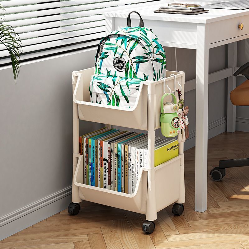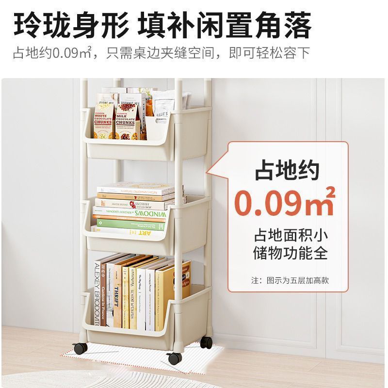 书架落地放书置物架桌下收纳带轮可移动推车桌边桌面收纳简易书柜