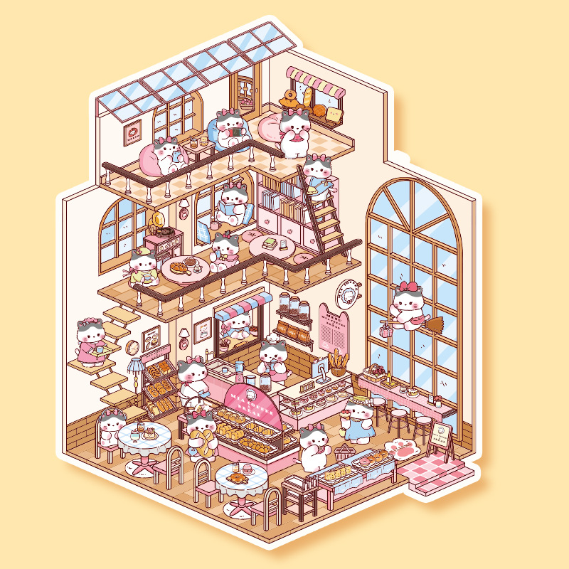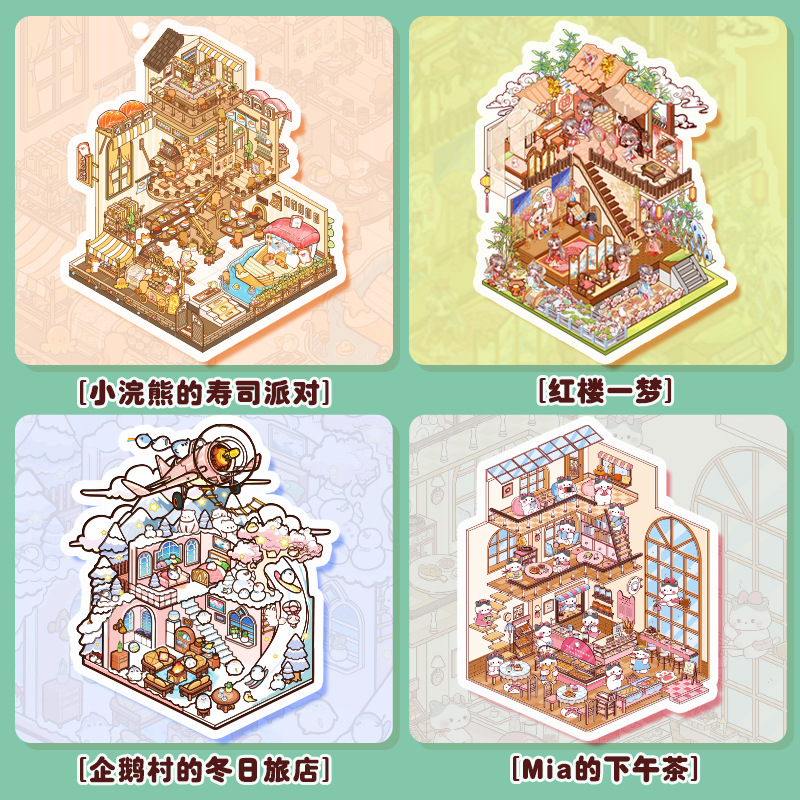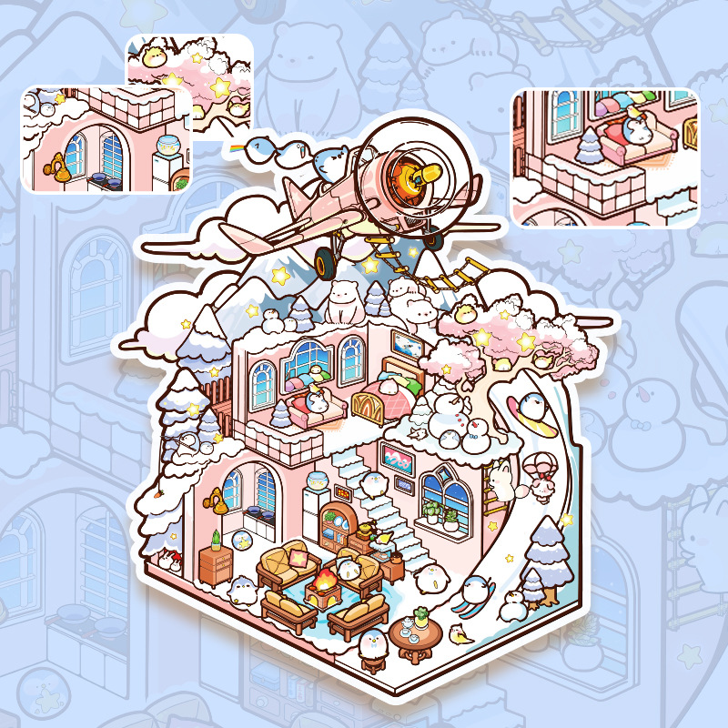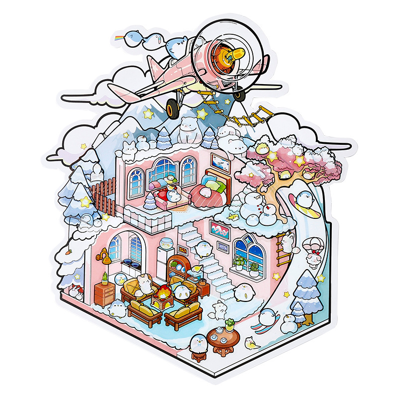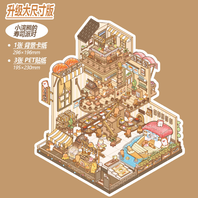 초대형 미니어처 장면 수첩 스티커, 자르지 않고도 사용 가능한 풍경 장면, 크로스보더 3D 쌓기 입체 하우스 수첩 스티커