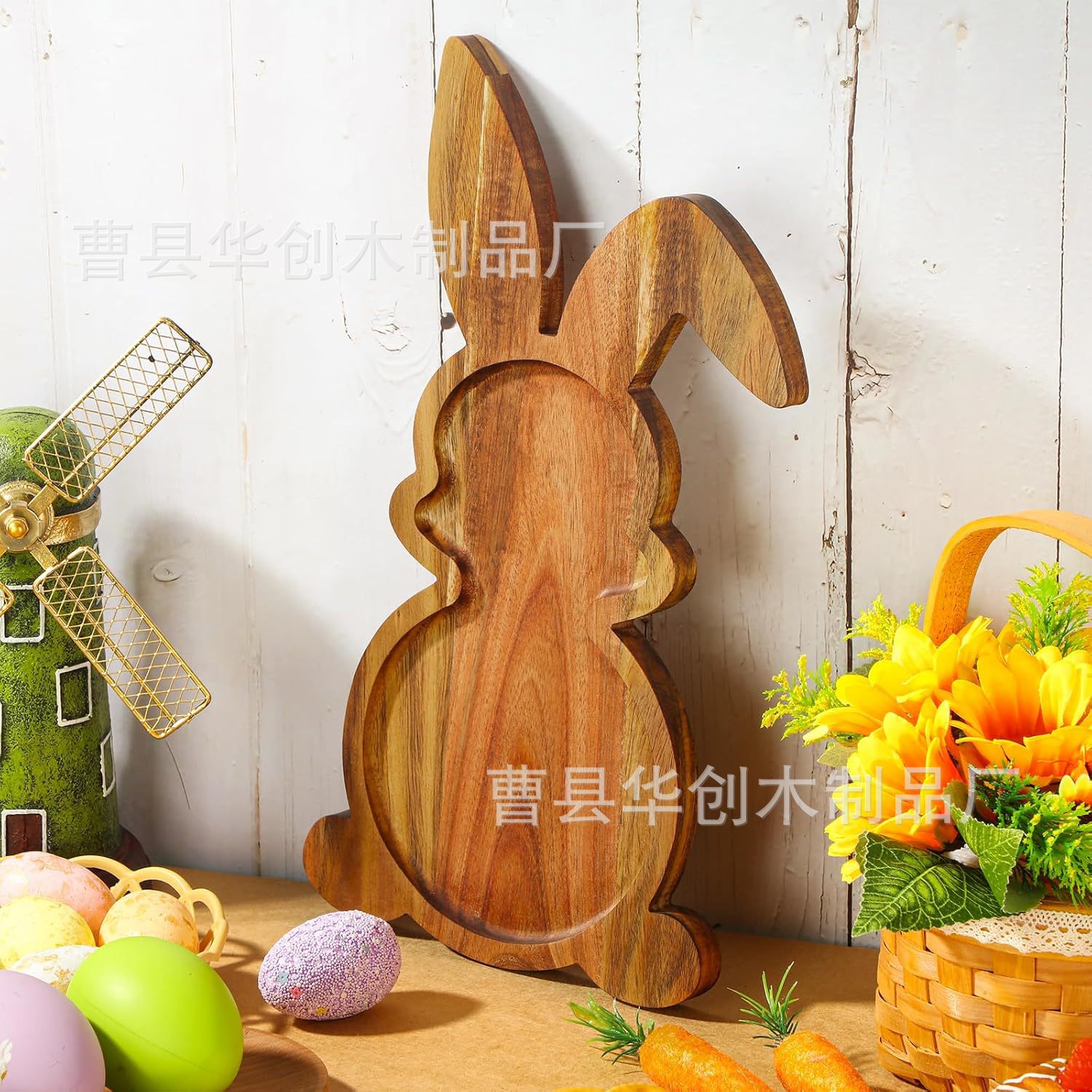 부활절 토끼 트레이 창조적 인 디너 플레이트 만화 주방 나무 도마 아기 식품 보충 나무 트레이 빵 트레이
