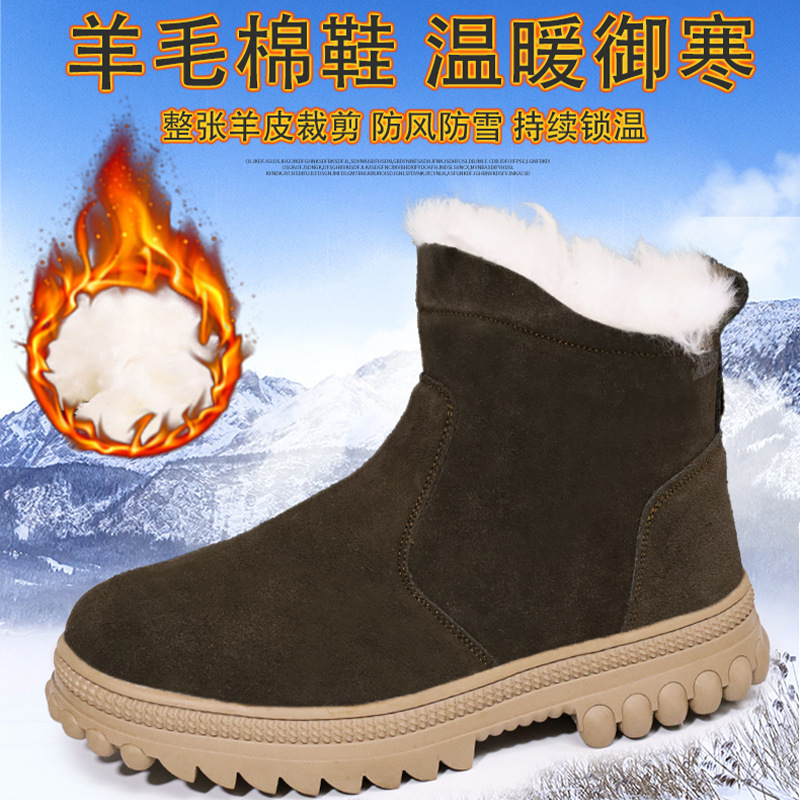 겨울 미드 하이 탑 스노우 부츠 남성용 특수 두꺼운 울 인테리어 냉방성 두꺼운 미끄럼 방지 야외 모피 원피스 울 부츠