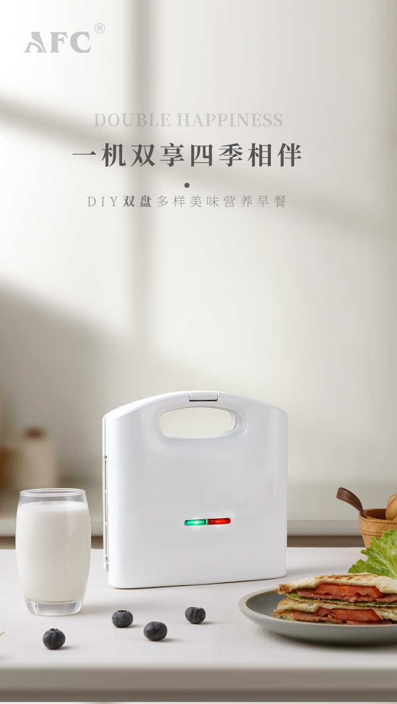 AFC 더블 플레이트 샌드위치 기계 다기능 아침 식사 기계 가벼운 음식 기계 침을 뱉어 드라이버 빵 프레스 베이킹 기계 가정용 전기 케이크 팬