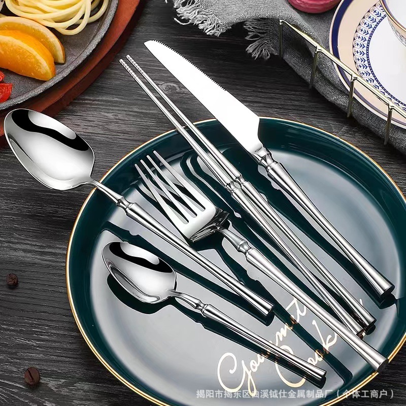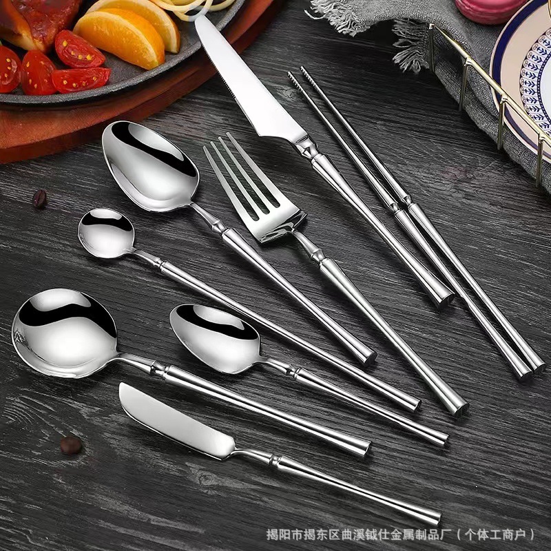 국경 간 작은 남자 허리 시리즈 304 스테인레스 스틸 서양식 식기 칼, 포크, 숟가락 및 젓가락 세트 가정용 호텔 스테이크 나이프와 포크