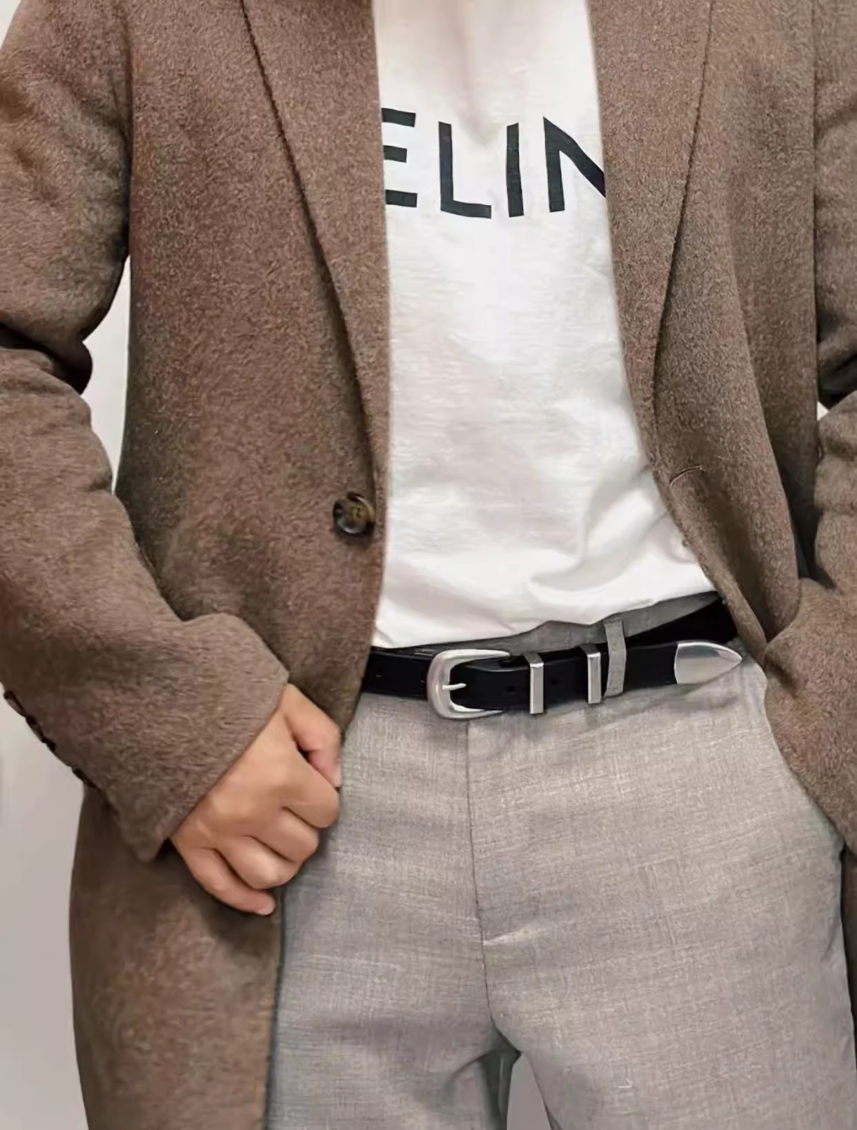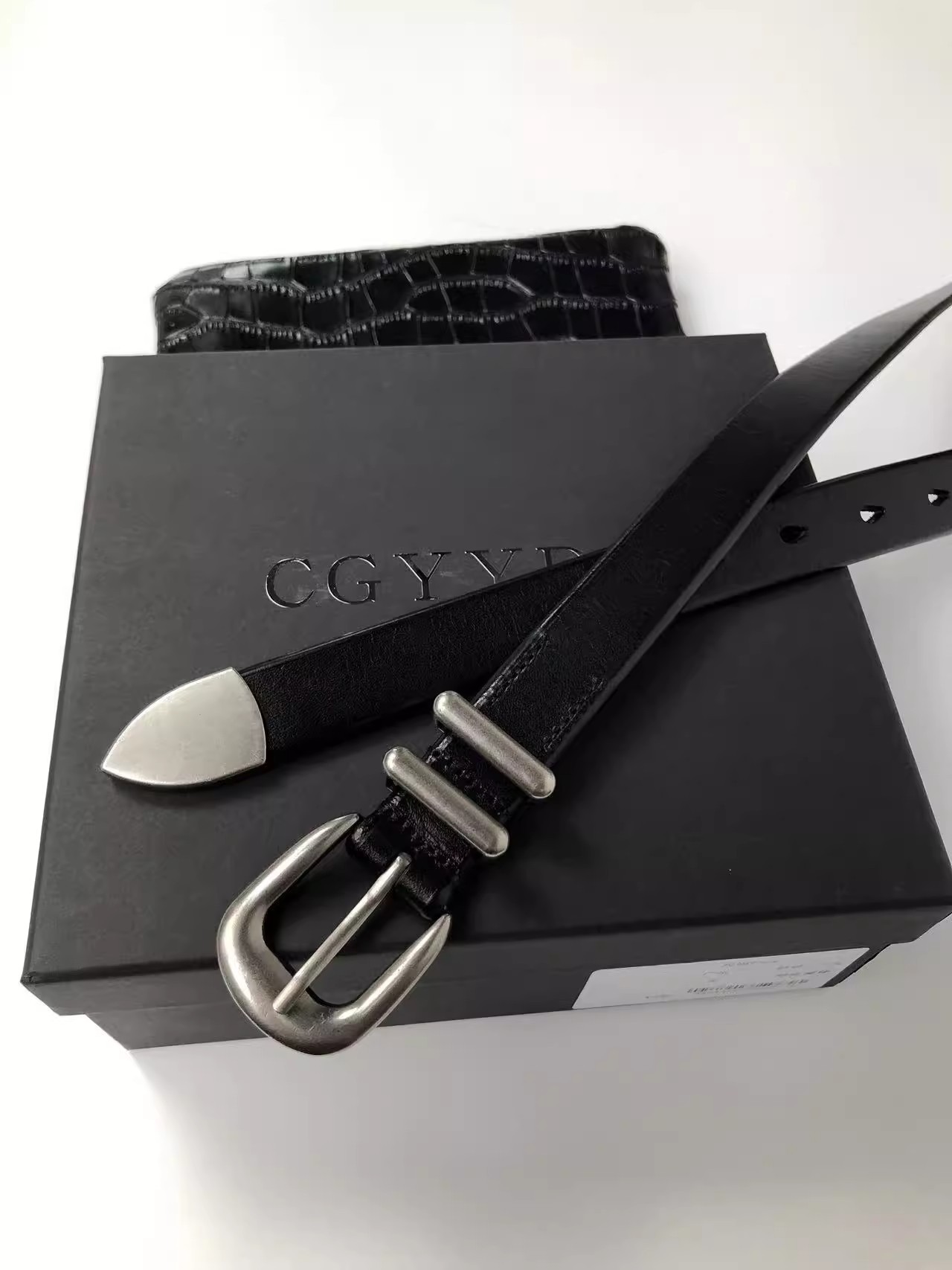 CGYDS 24 새로운 스타일 고민 특수 탑 레이어 Cowhide 실버 도금 버클 패션 조커 벨트 벨트
