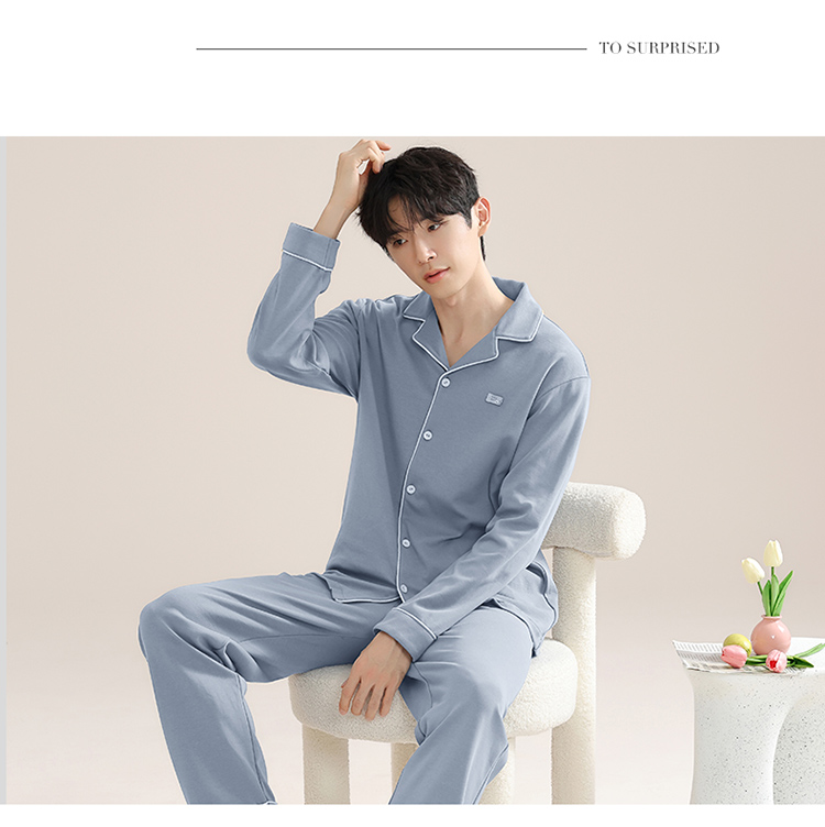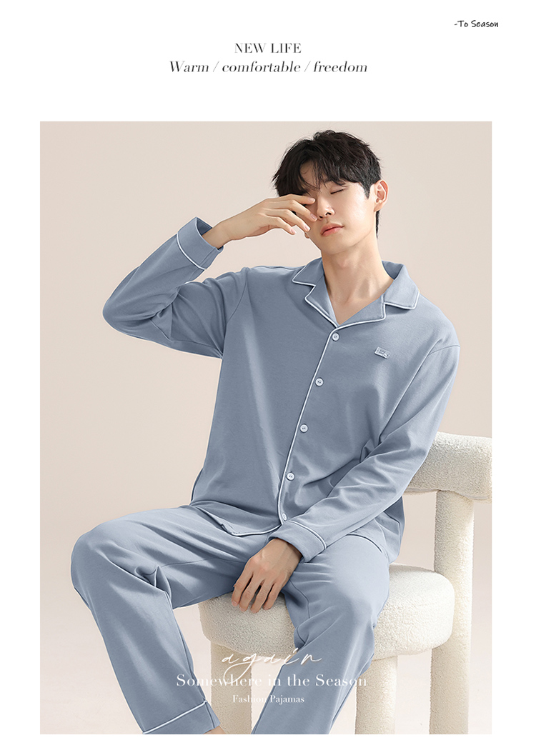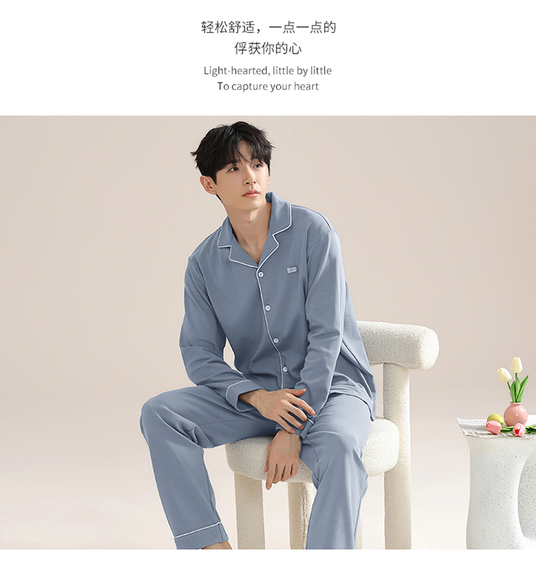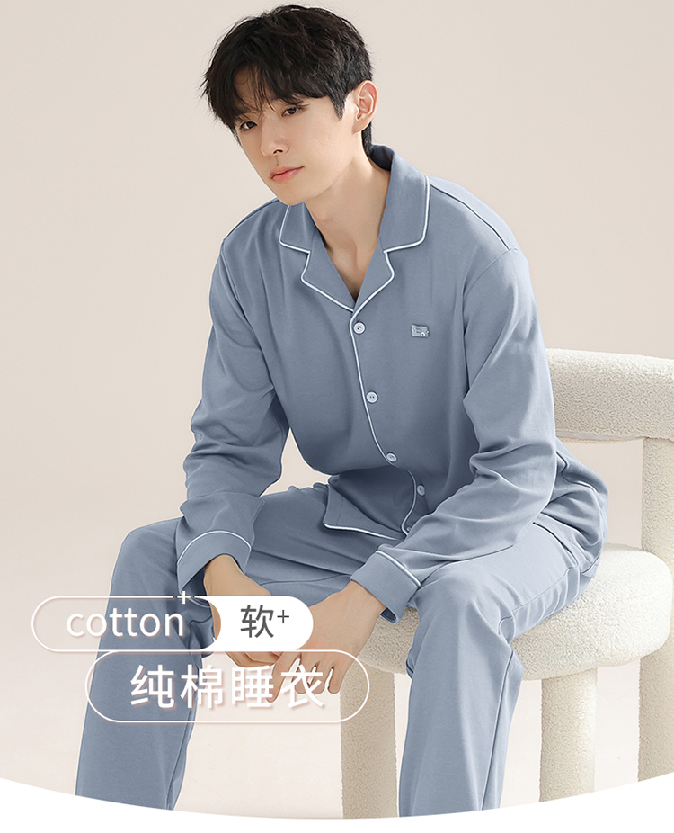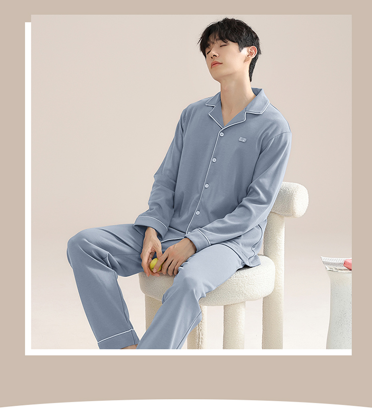 순면 잠옷 남자의 봄과 여름 긴 소매 카디건 2025 새로운 가을과 겨울 의상 홈 의류 세트 겨울