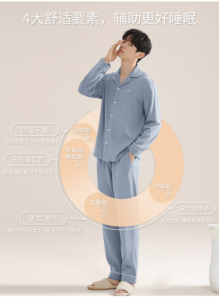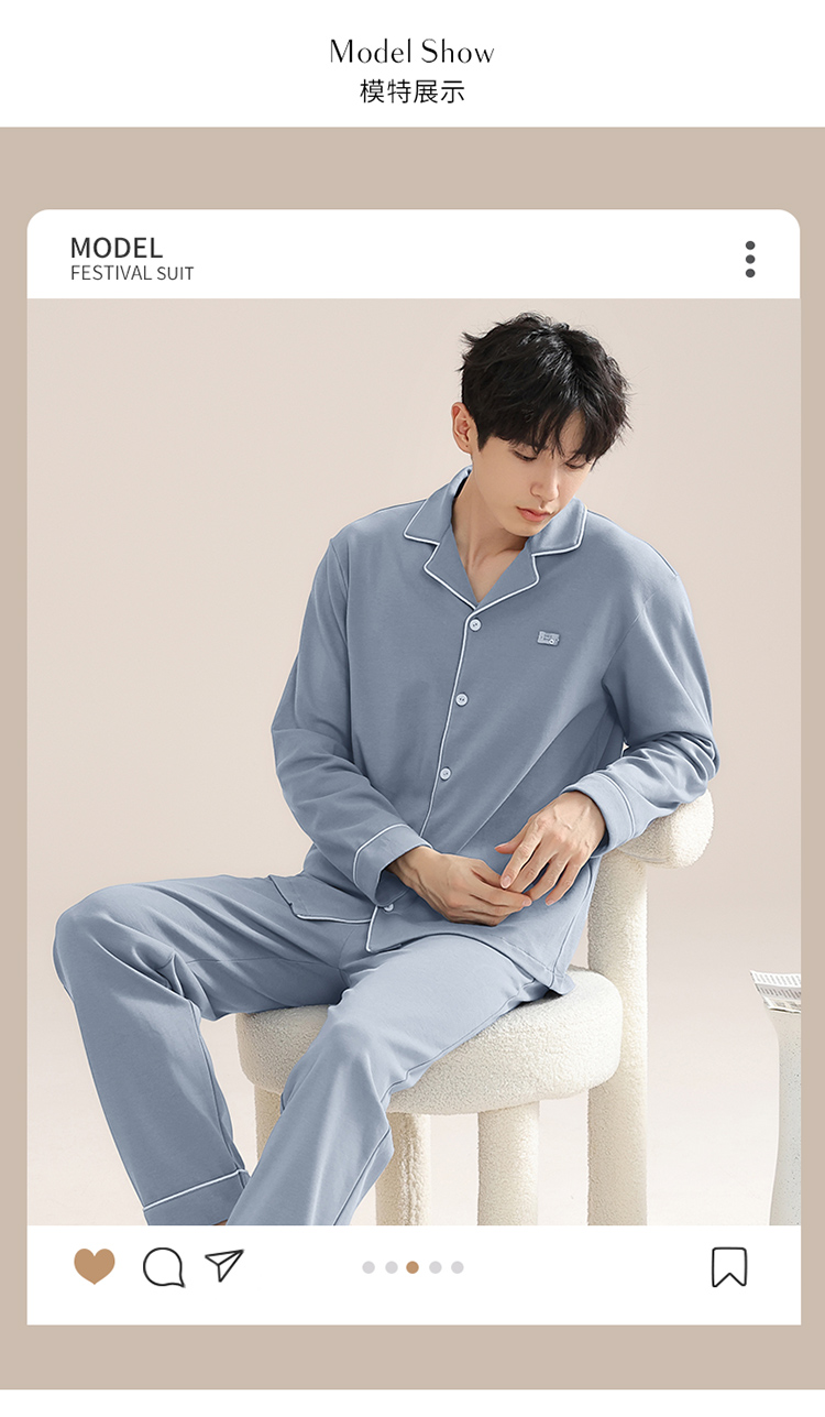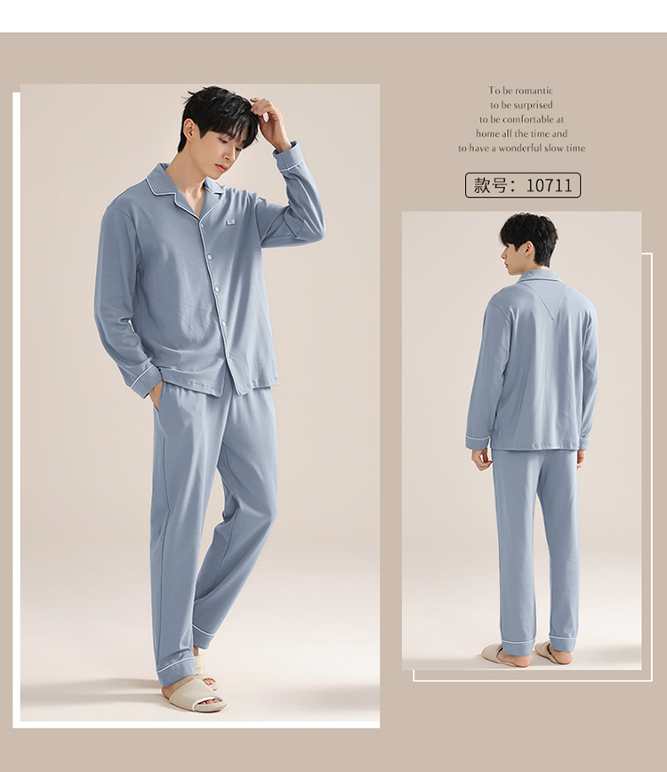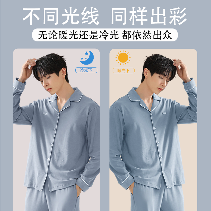 순면 잠옷 남자의 봄과 여름 긴 소매 카디건 2025 새로운 가을과 겨울 의상 홈 의류 세트 겨울