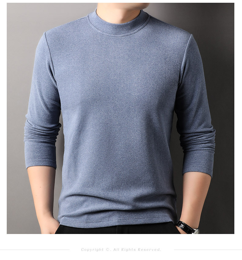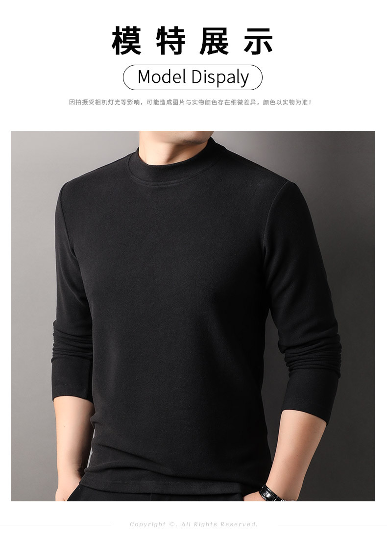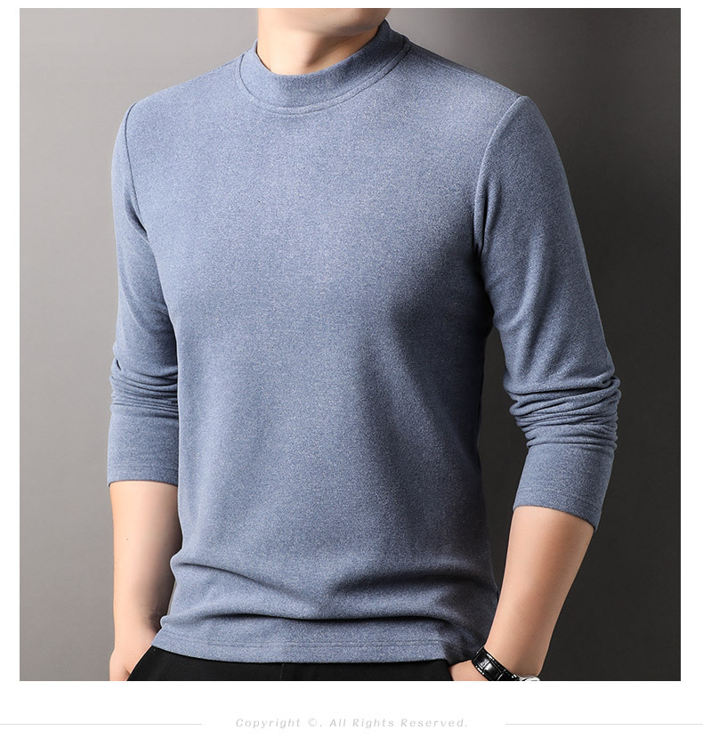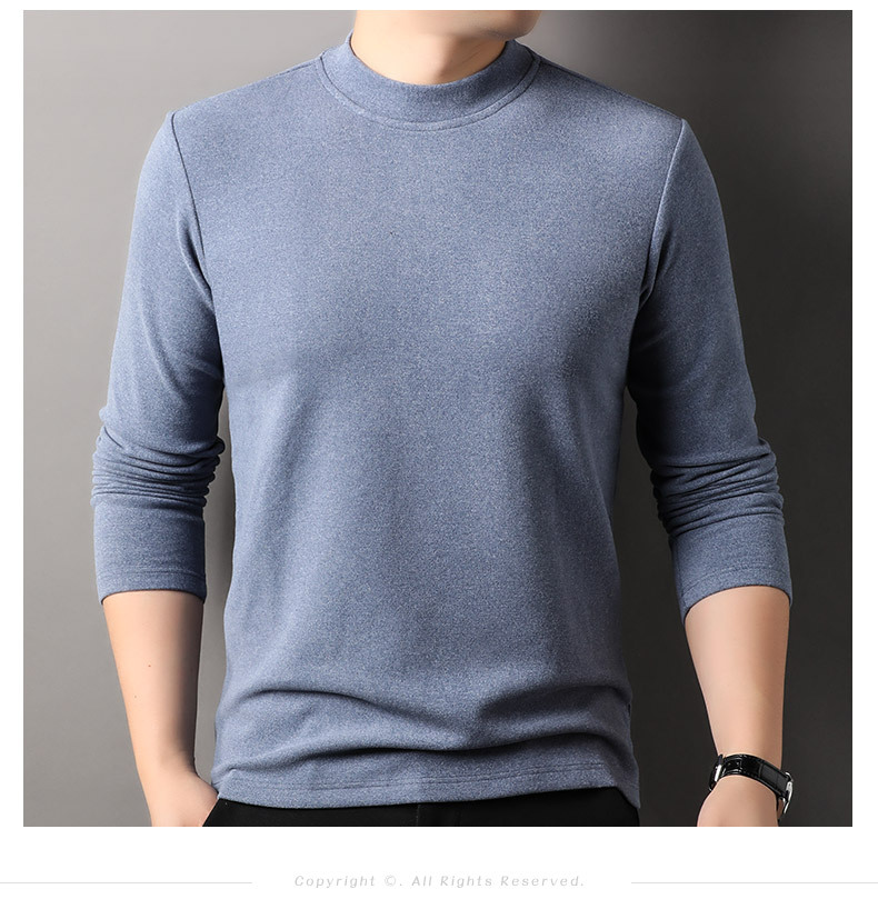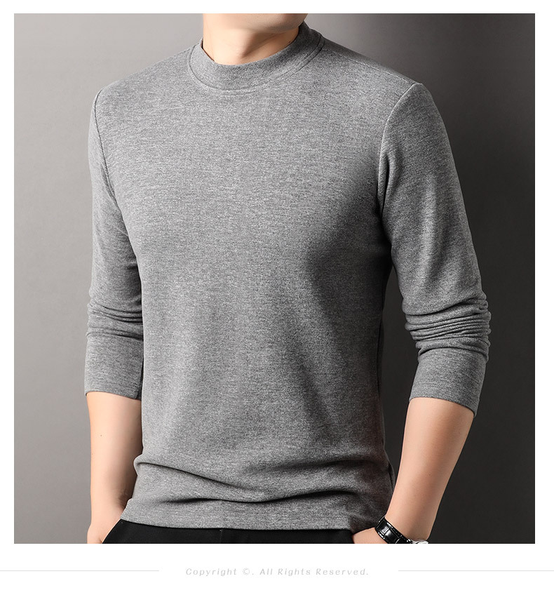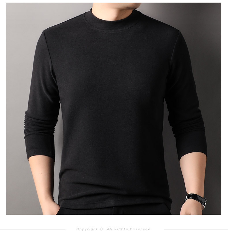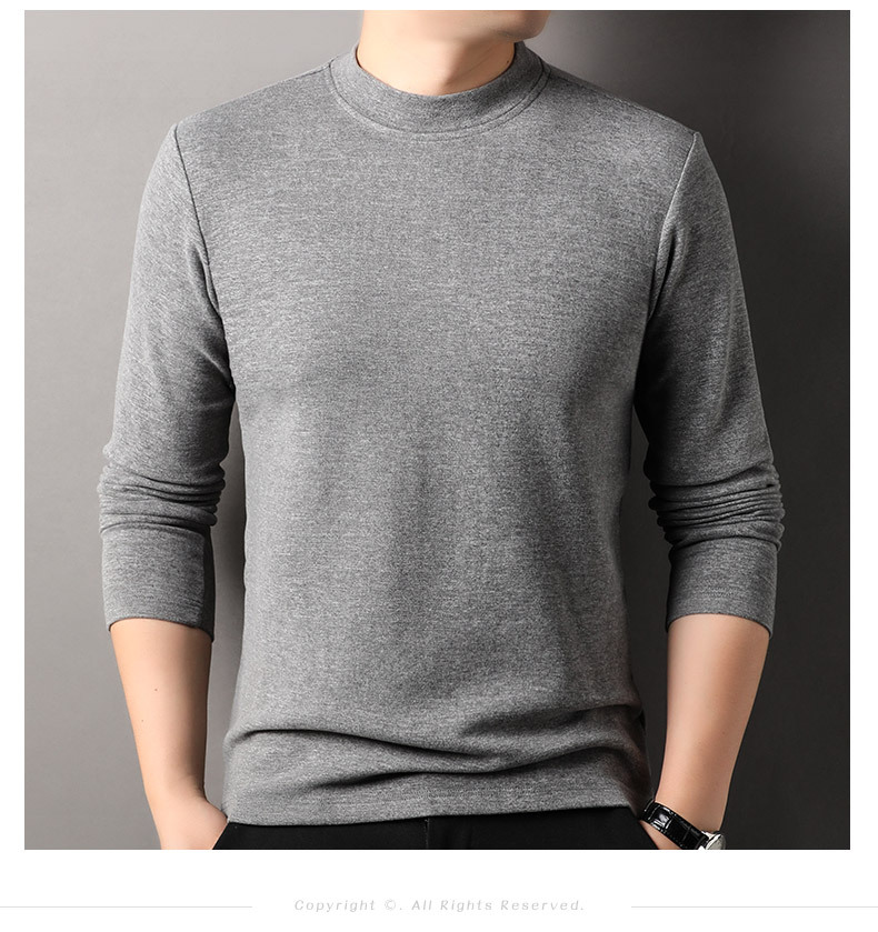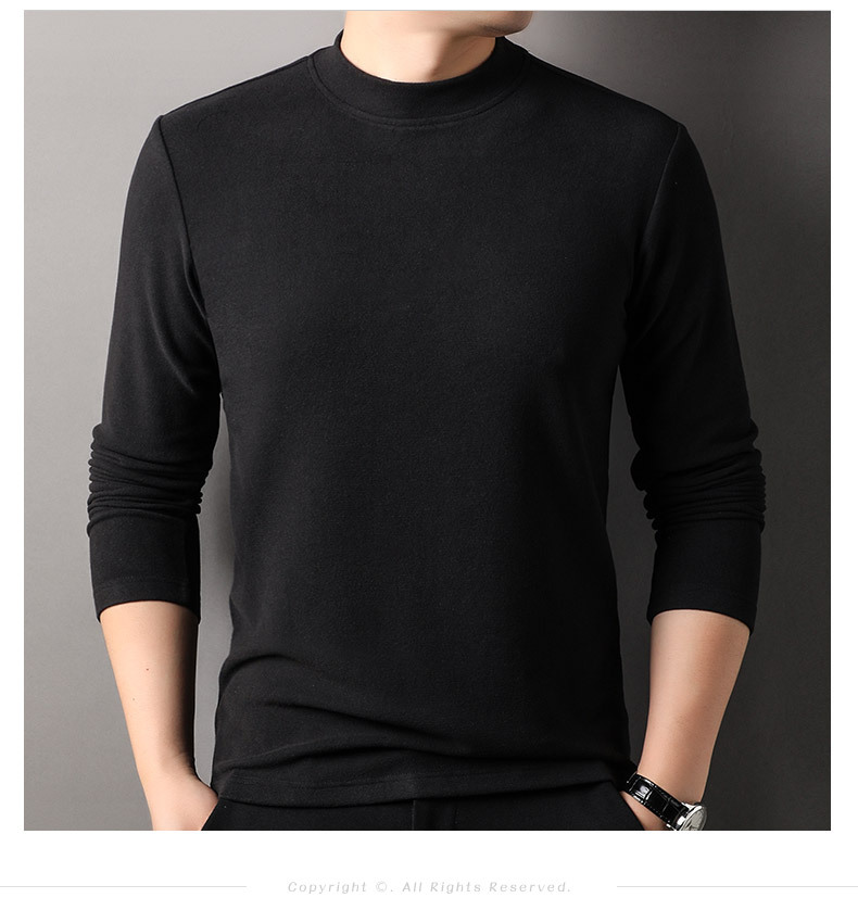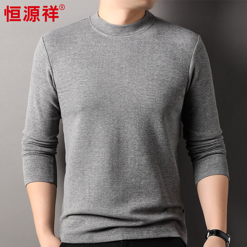 Hengyuanxiang 7A 항균 양털 남성 긴팔 티셔츠 2024 가을 및 겨울 새로운 세미 하이 칼라베이스 셔츠 남성복