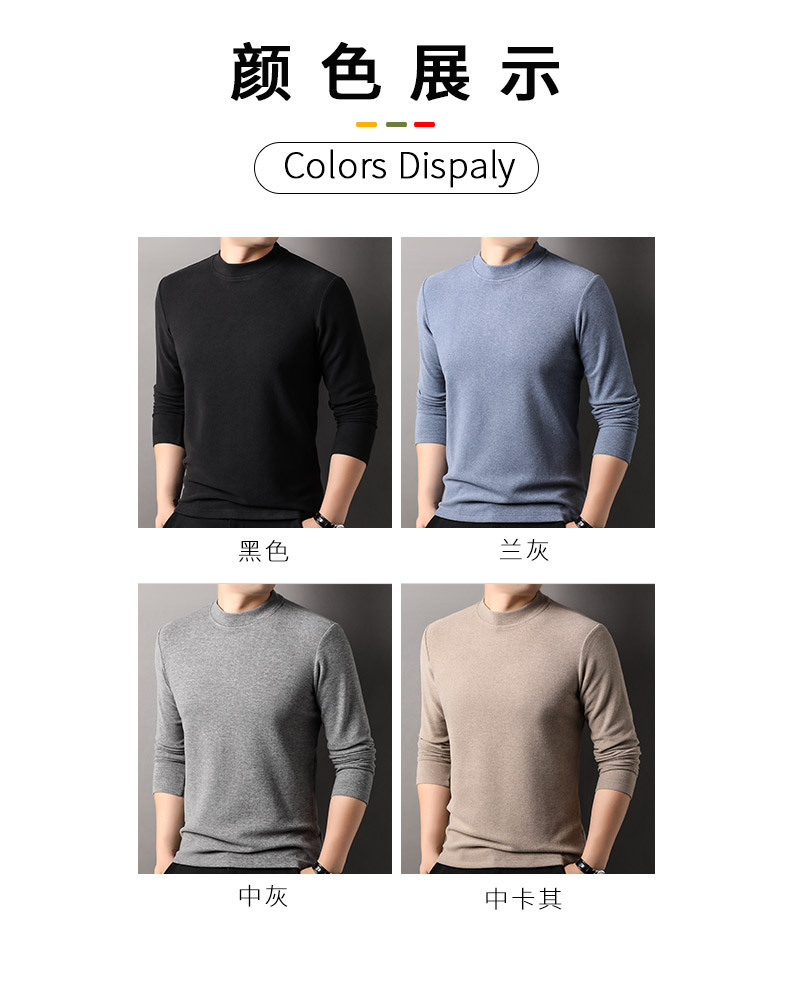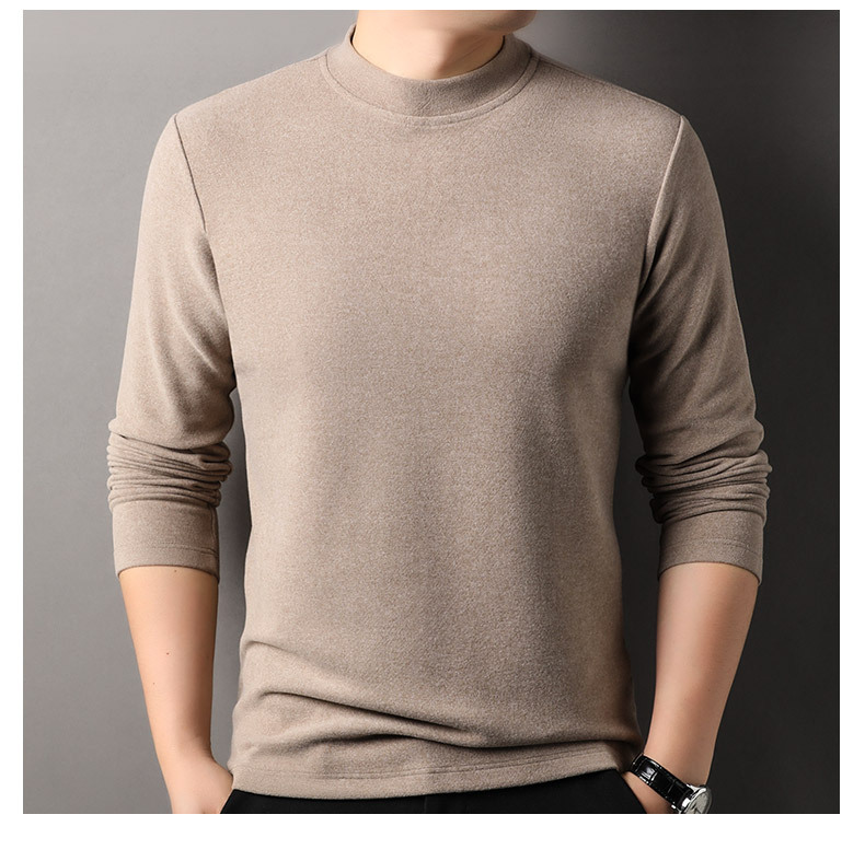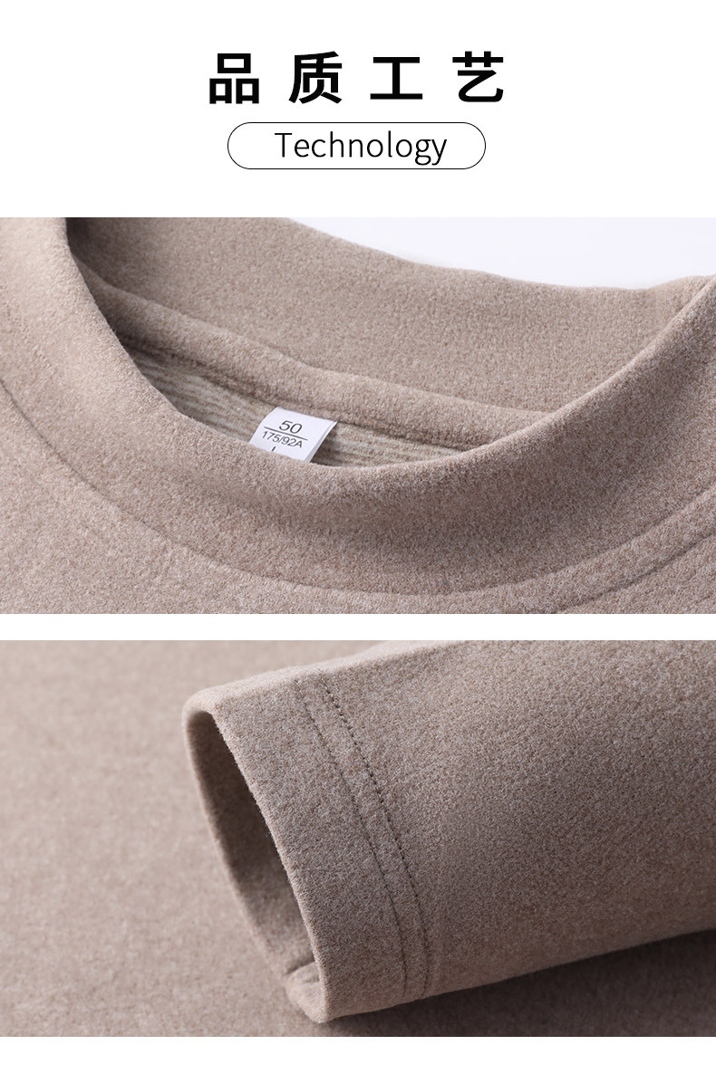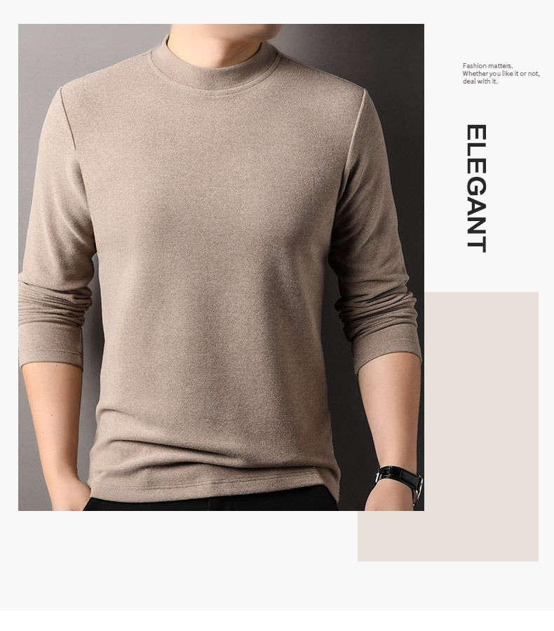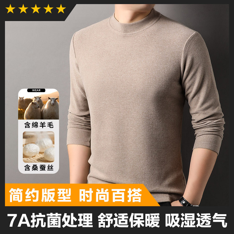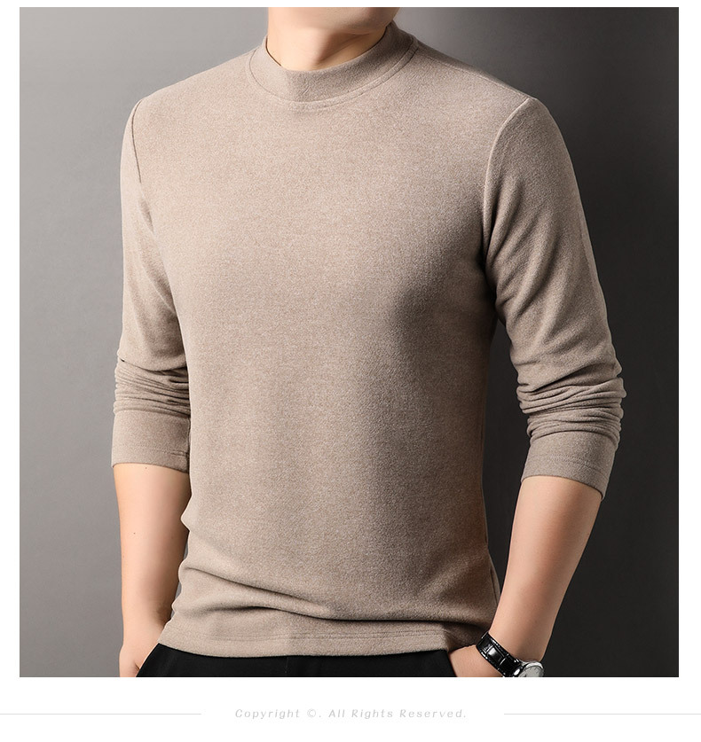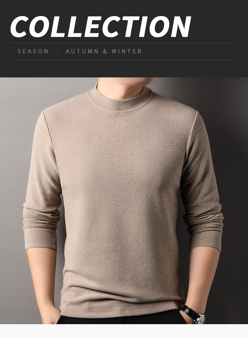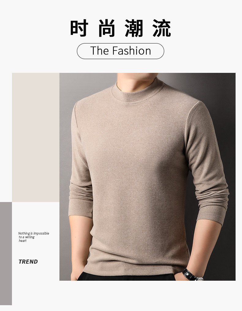 Hengyuanxiang 7A 항균 양털 남성 긴팔 티셔츠 2024 가을 및 겨울 새로운 세미 하이 칼라베이스 셔츠 남성복