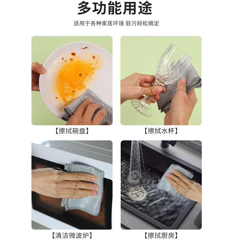 식기 세척 걸레 실버 와이어 식기 세척 천 이중층 두꺼운 주방 수색 패드 비 스틱 오일 와이어 식기 세척 걸레 도매