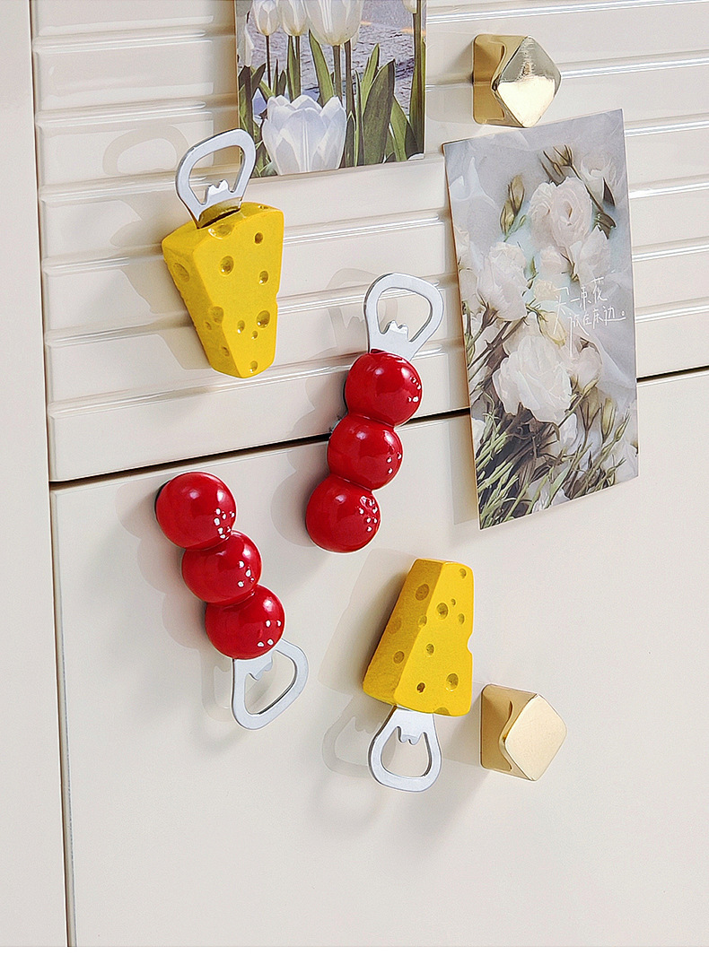 창조적 인 자기 병따개 귀여운 냉장고 스티커 설탕 코팅 된 haws 치즈 디자인 오픈 캡 아티팩트 가정용 병 캡 오프너