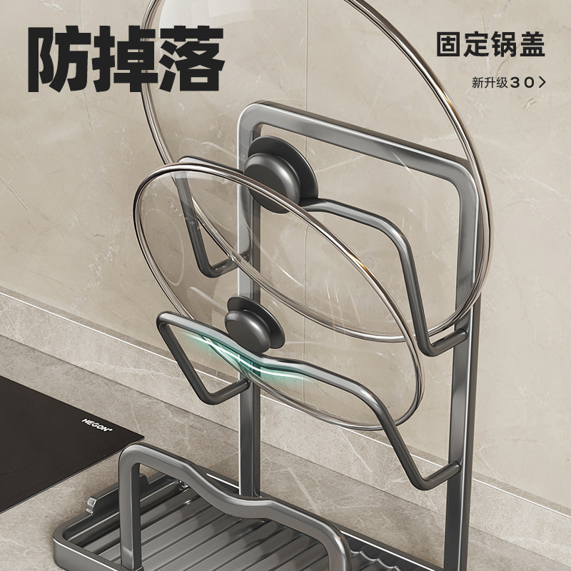 공장 공급 주방 냄비 커버 랙 카운터 탑 플레이서 볶음 삽 저장 랙 스포블 스토리지 아티팩트 랙