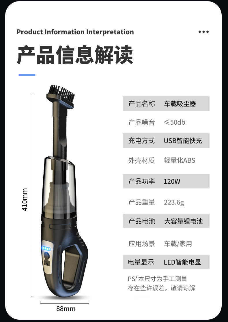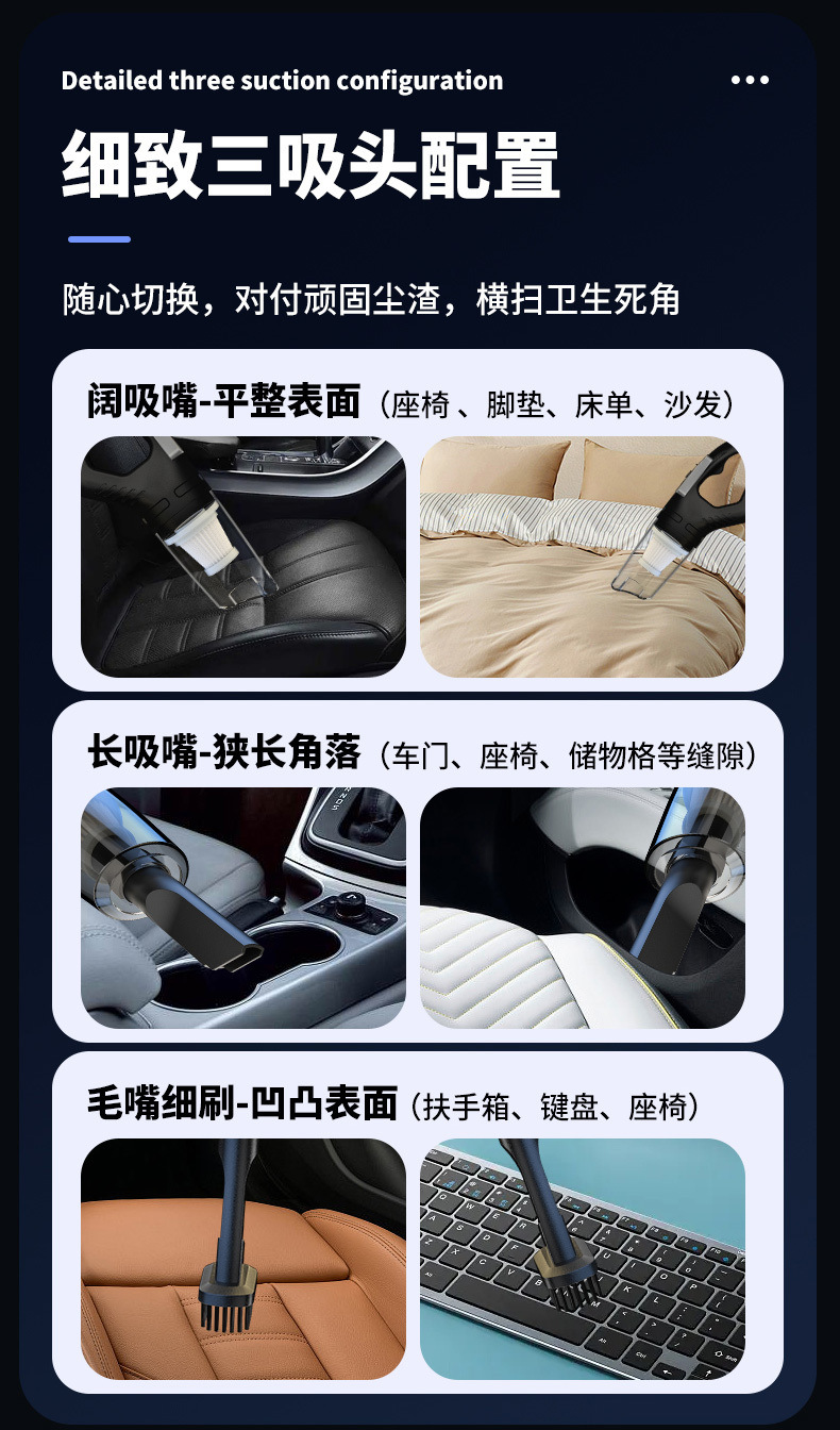 독일 무선 자동차 진공 청소기 작은 가정용 충전식 핸드 헬드 강력한 실내 소파 개 머리 흡입 인공물