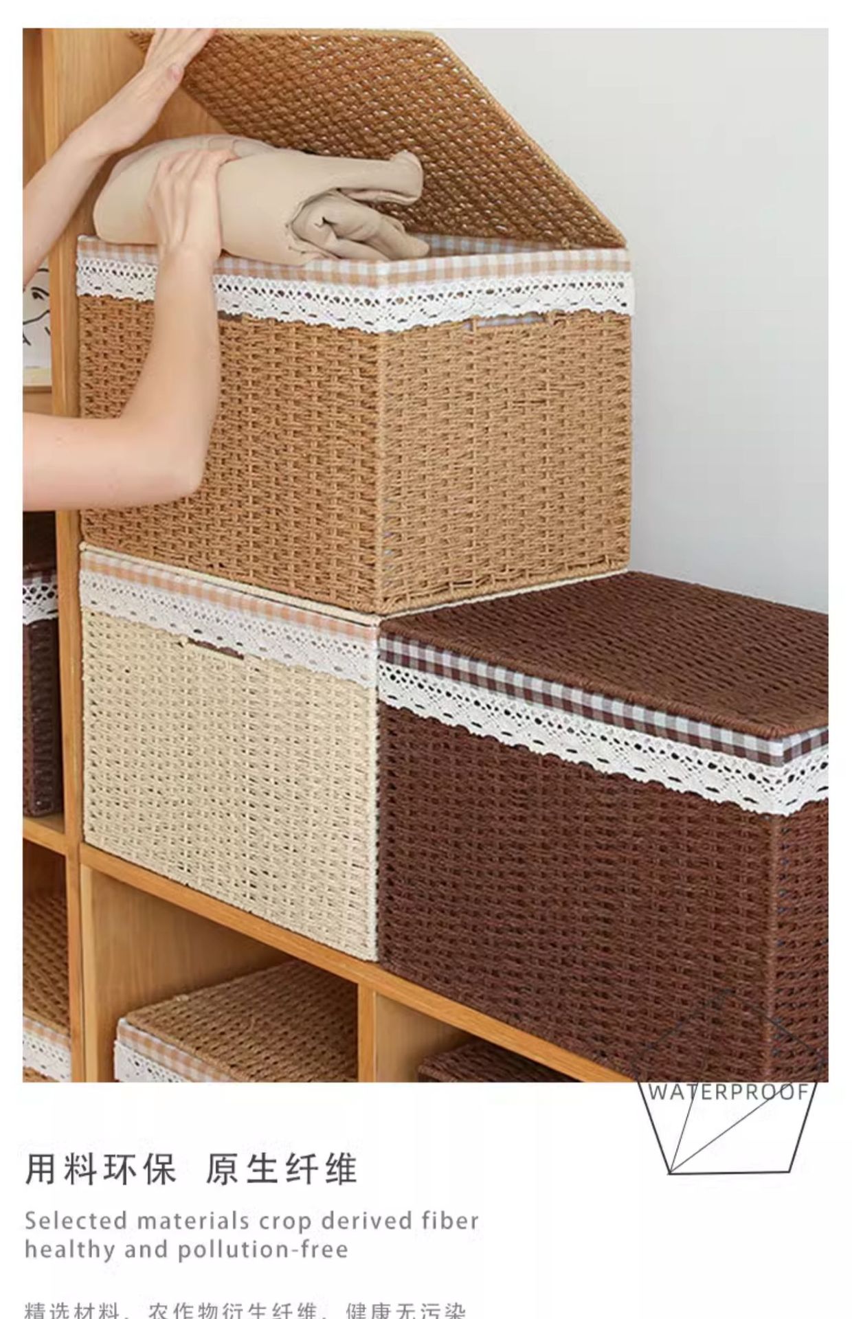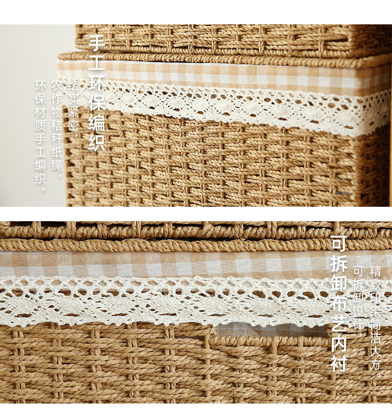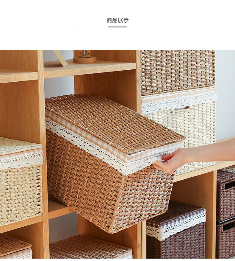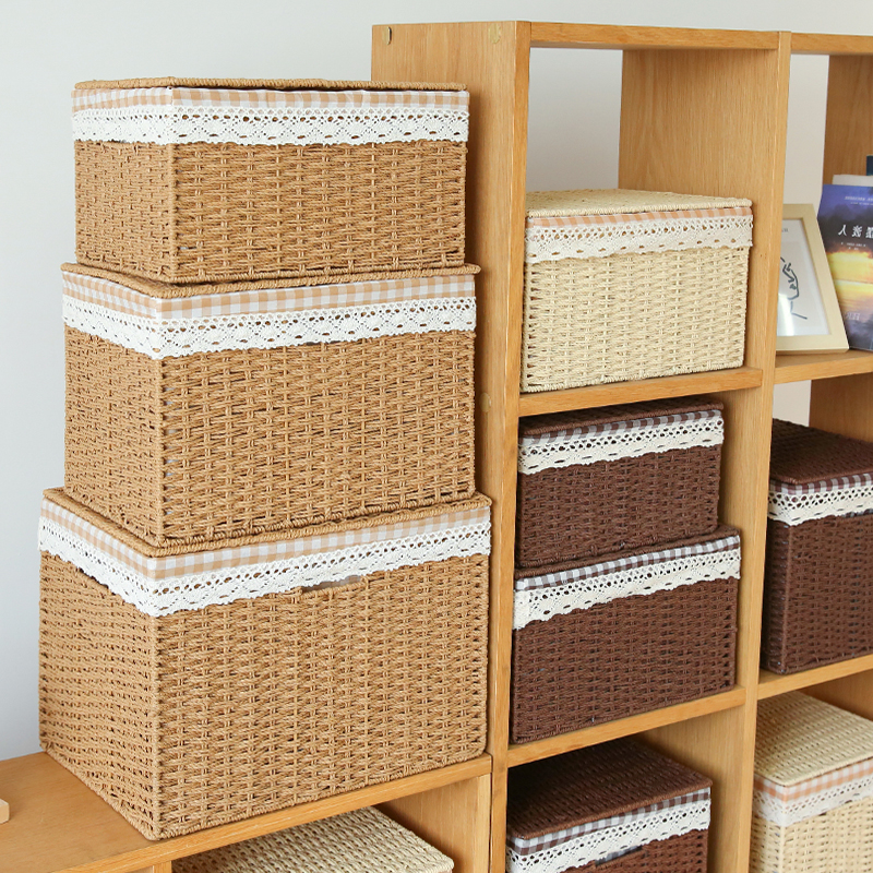 일본식 간단한 저장 상자 가정용 보관 모방 등나무 보관 바구니 잡화 거실 보관 상자 Instagram 스토리지 골드