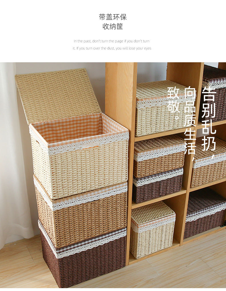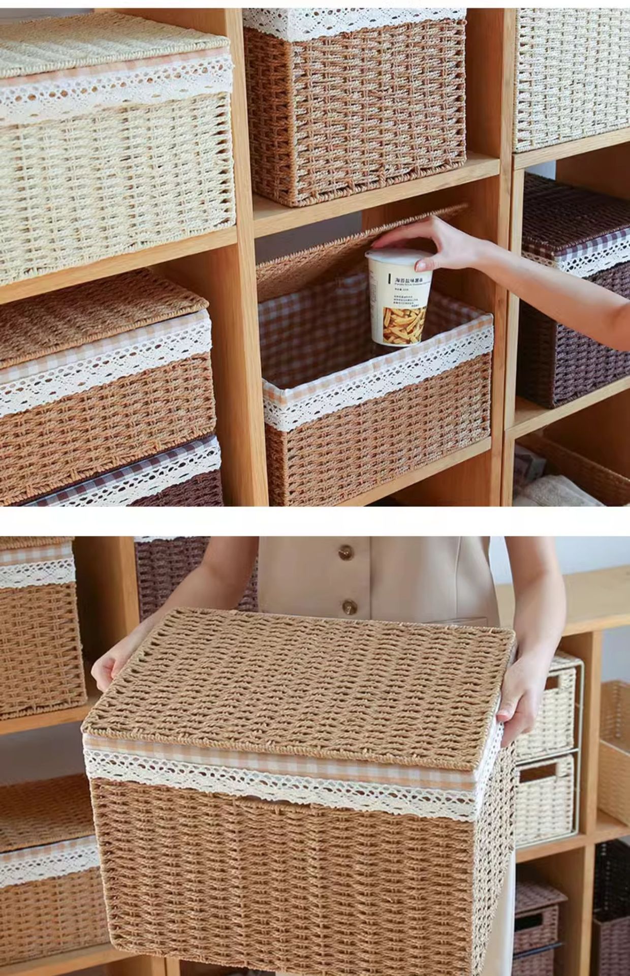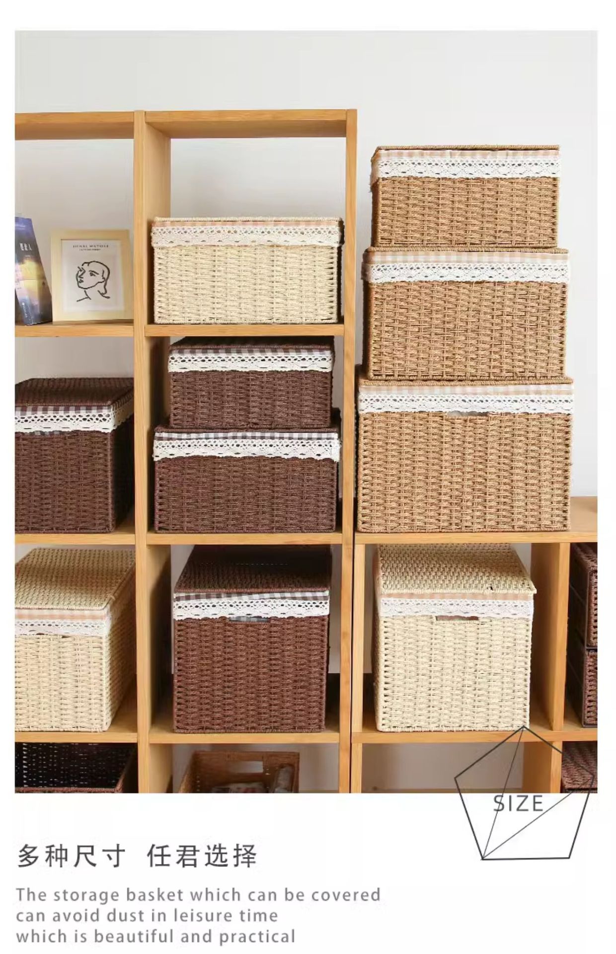 일본식 간단한 저장 상자 가정용 보관 모방 등나무 보관 바구니 잡화 거실 보관 상자 Instagram 스토리지 골드