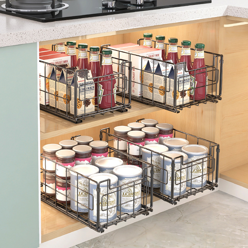 桌面铁艺折叠收纳筐 家用厨房浴室多用途杂货分类整理篮子收纳筐