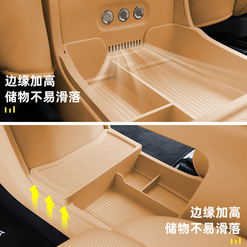Zhijie R7 센터 콘솔 아래 이중 레이어 보관함 [앰버 브라운] 실리콘