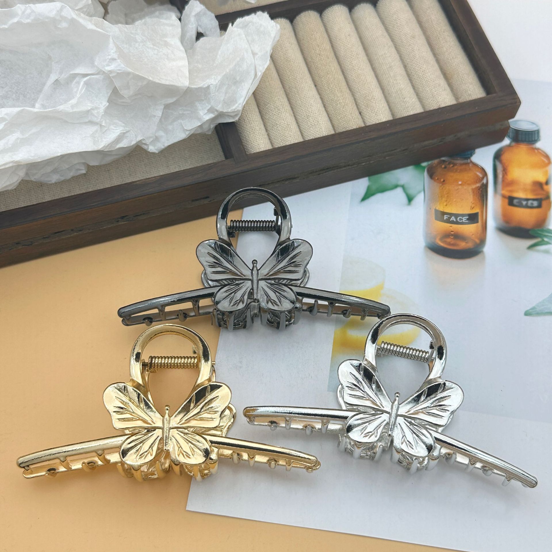 귀여운 나비 그리퍼 기질 ~ 고급 여성용 머리핀, 머리 뒤의 대형 업두 상어 클립 헤드기어, 여름