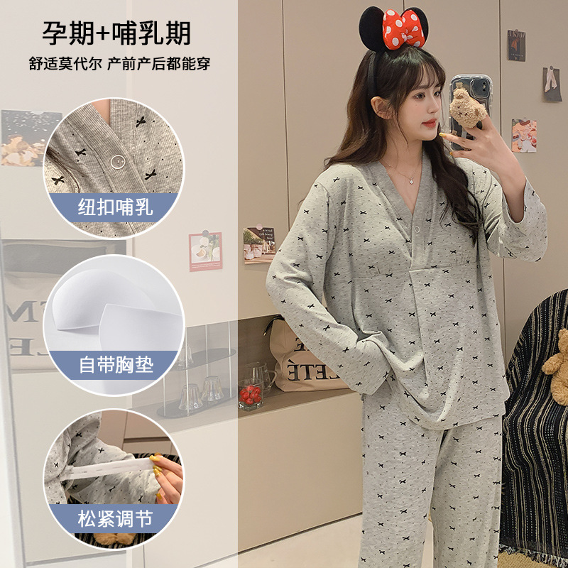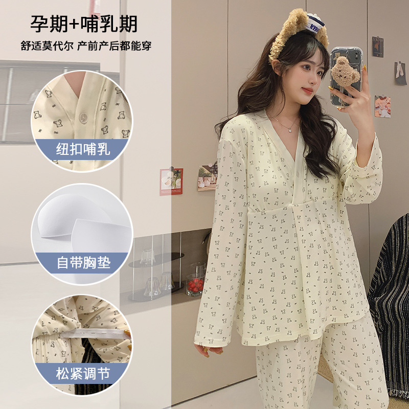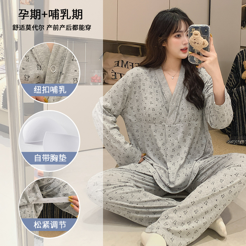 임산부는 브래지어 모달 월간 옷 파자마 여성 봄과 가을 긴 소매 바지 간호 모성 홈 옷 세트