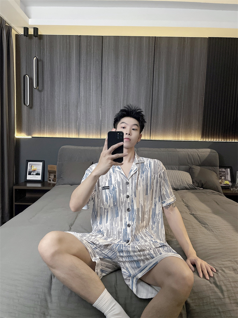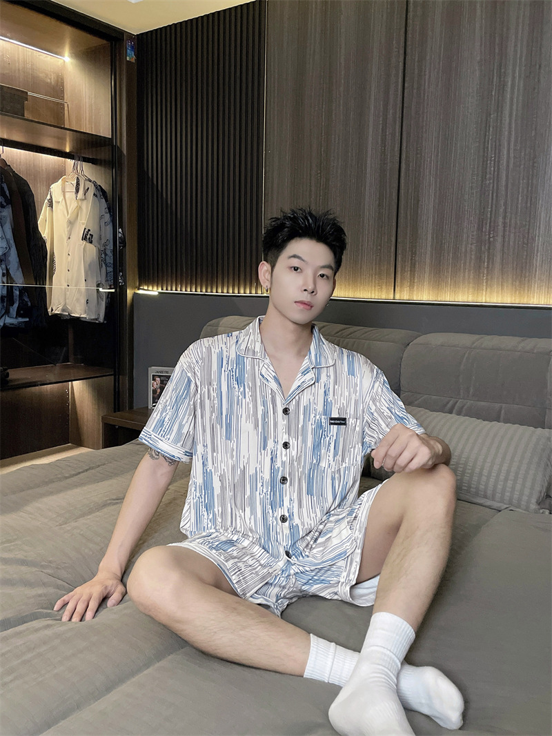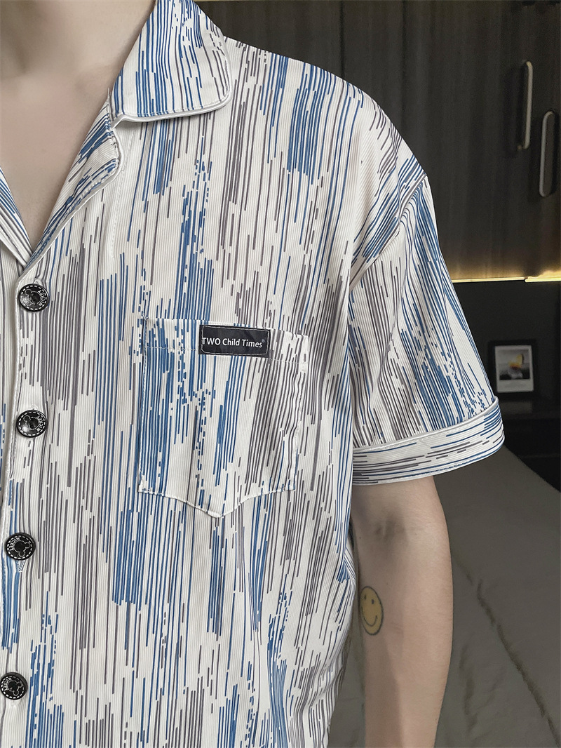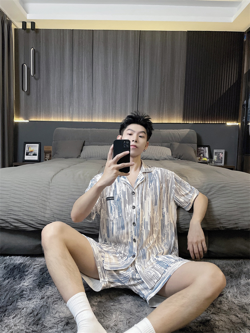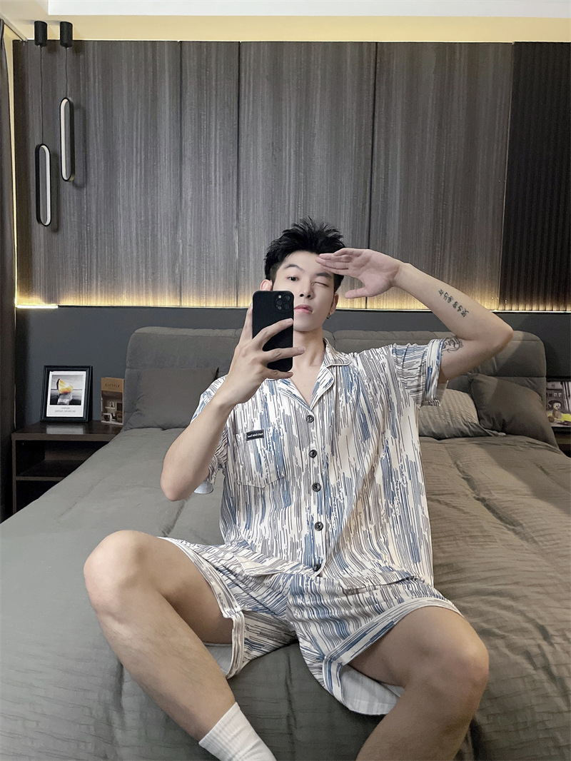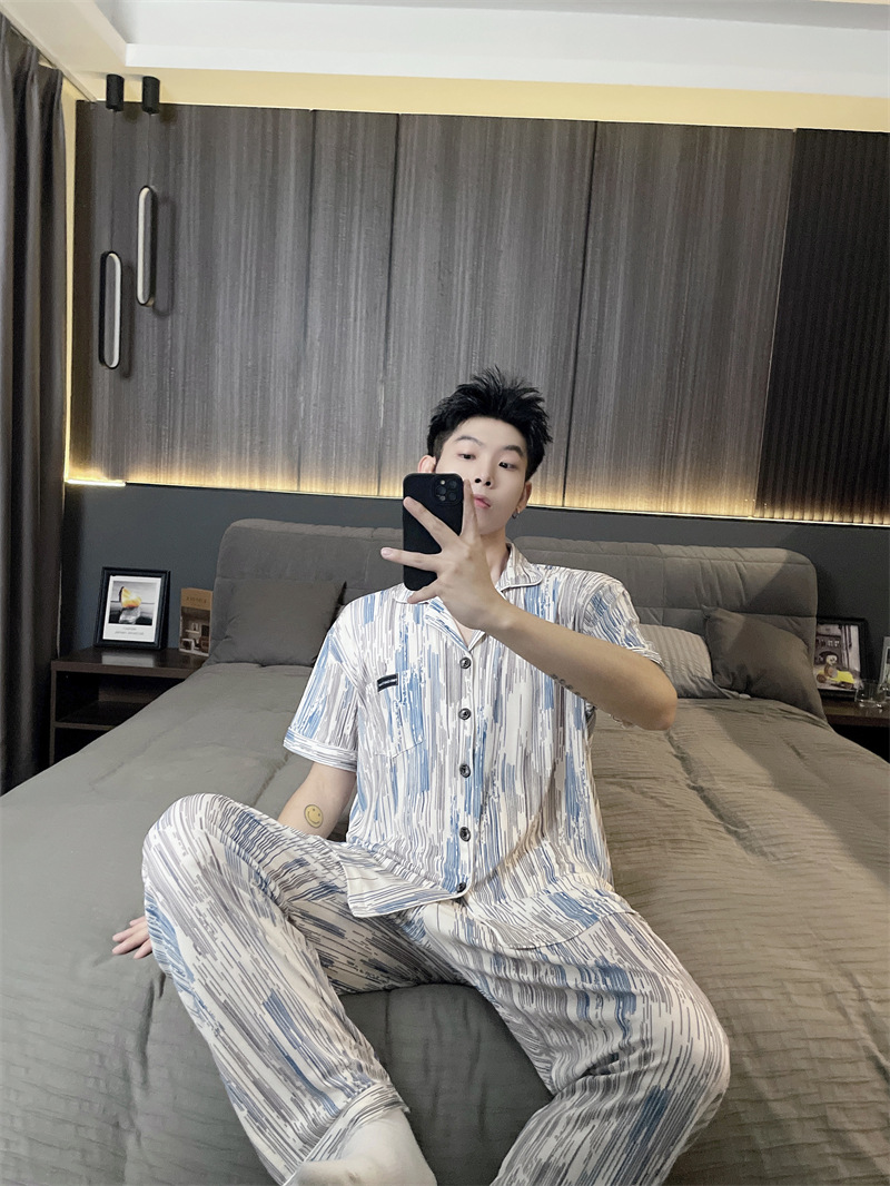 아이스 실크 파자마 남성 3 종 봄과 여름 카디건 반바지 바지와 지방 플러스 사이즈 300kg 가정용 의류 세트
