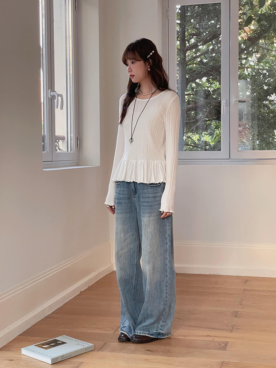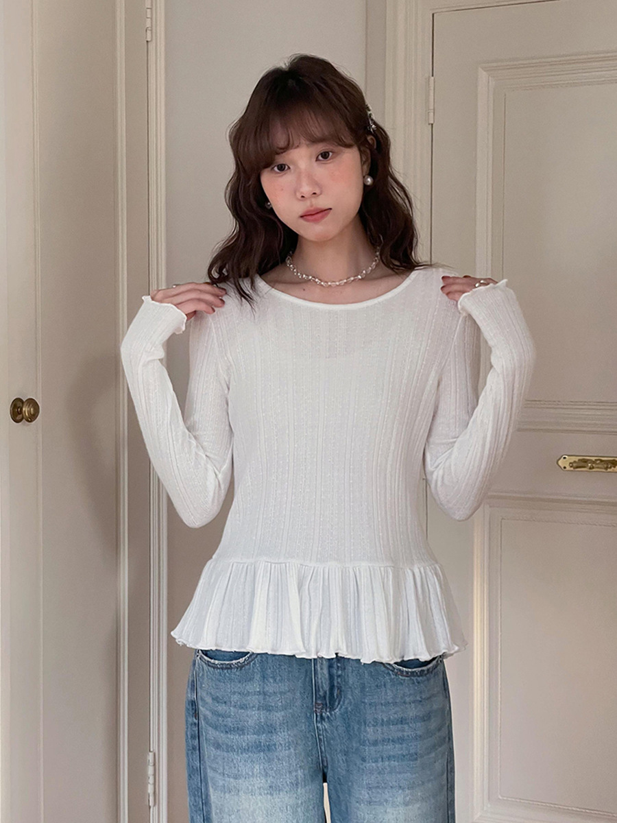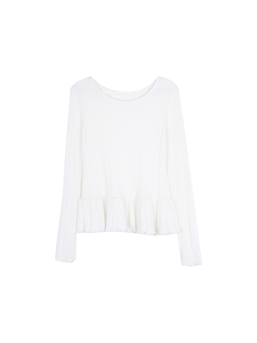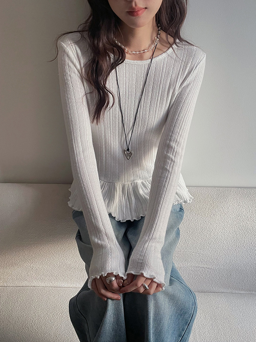 【발레2.0 핫템 가을판】프렌치 레트로 러플 밑단 티셔츠 가을 니트 탑 Y2851F