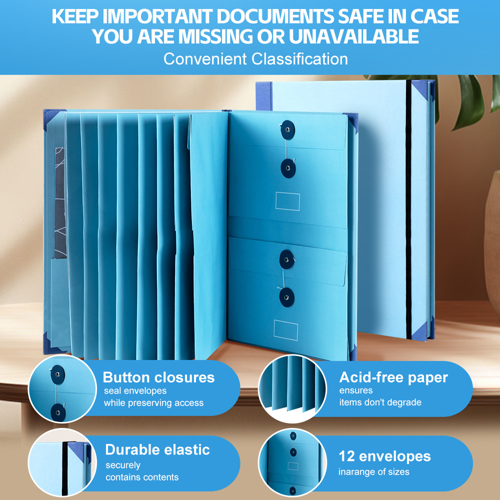 포켓 아코디언 문서 가방-A4 블루