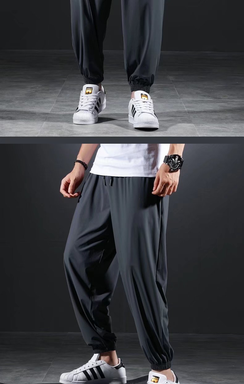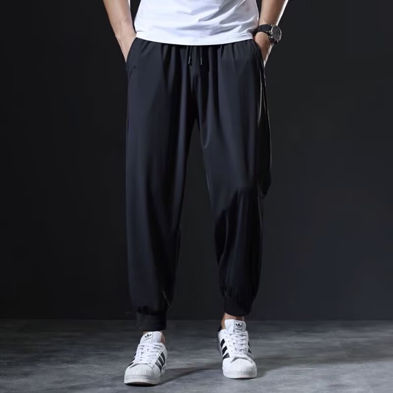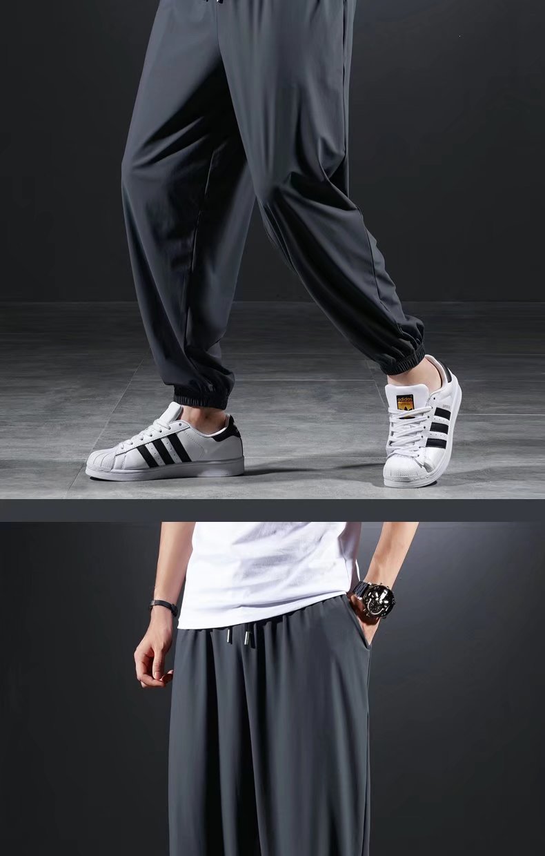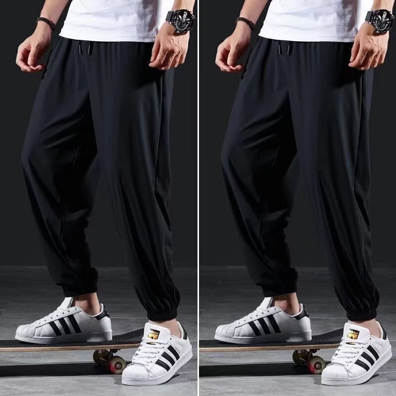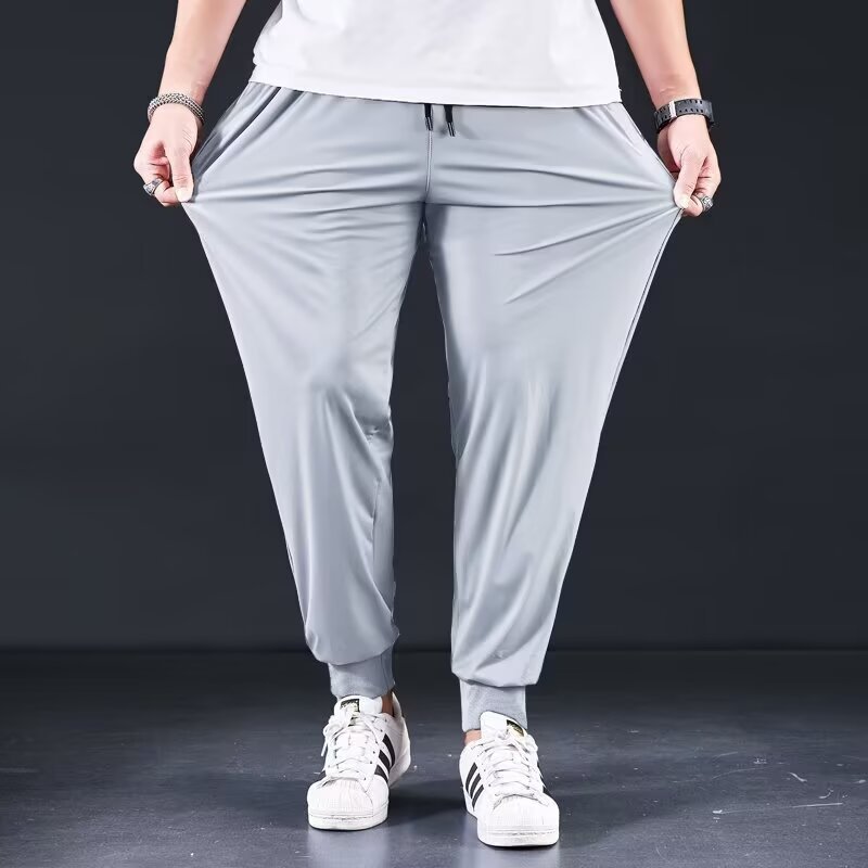 남자 달리기 바지 아이스 실크 여름 빠른 건조 훈련 피트니스 지퍼 포켓 바지 남자 체육관 스포츠 통기성 바지