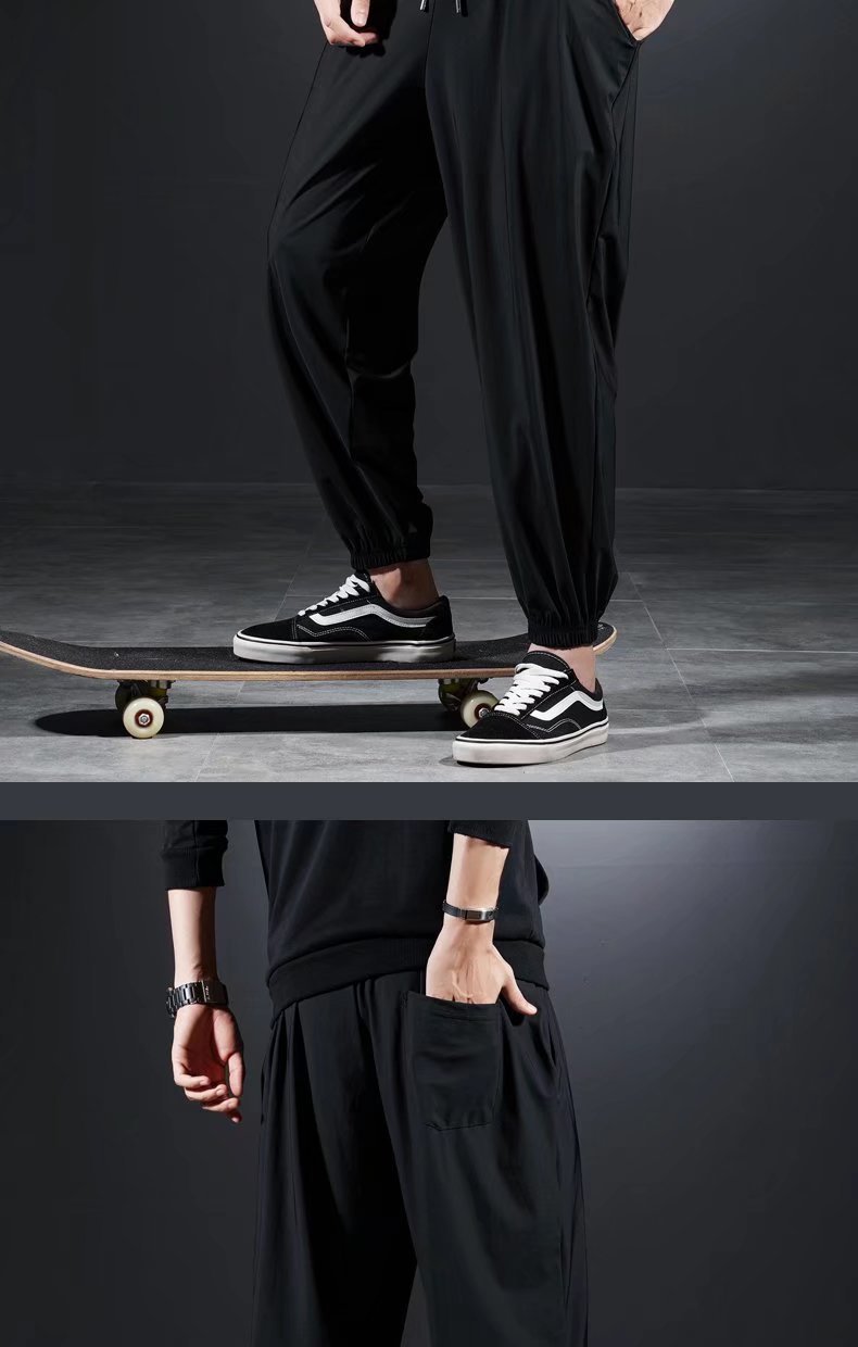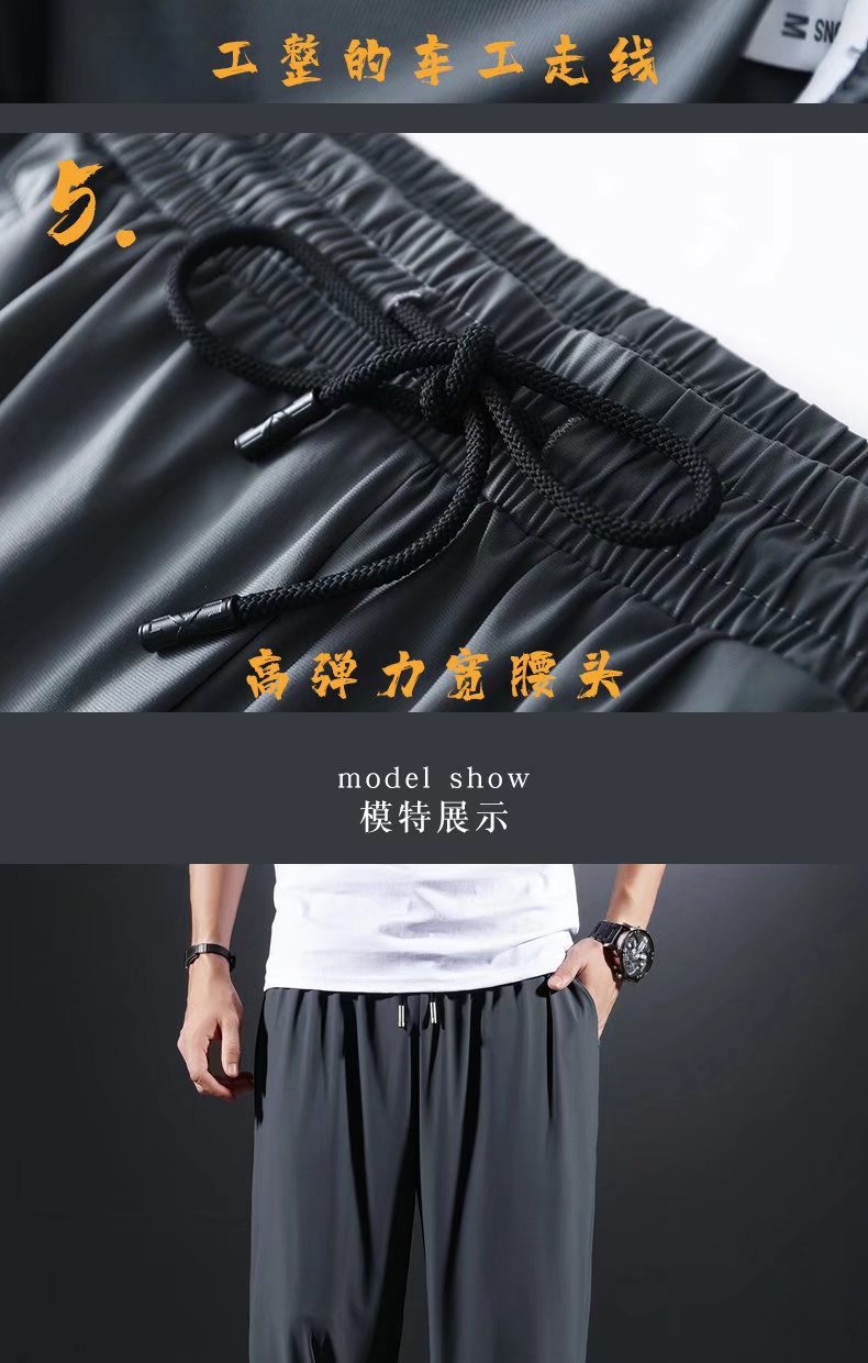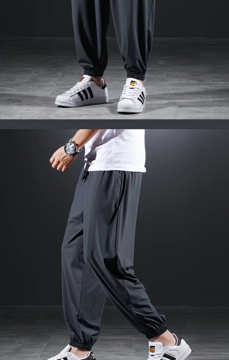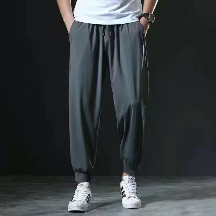 남자 달리기 바지 아이스 실크 여름 빠른 건조 훈련 피트니스 지퍼 포켓 바지 남자 체육관 스포츠 통기성 바지