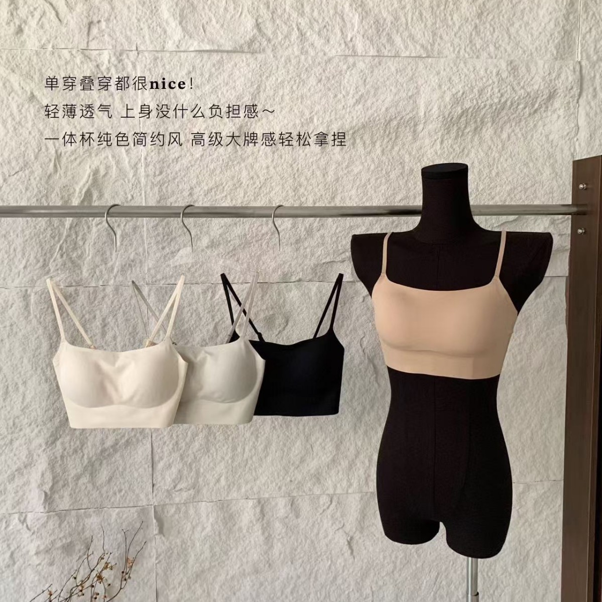 미니멀리스트 솔리드 컬러 스트랩리스 일체형 컵 속옷 외부 착용 통기성 에어컨 컵 무료 및 편안한 비 박리 브래지어