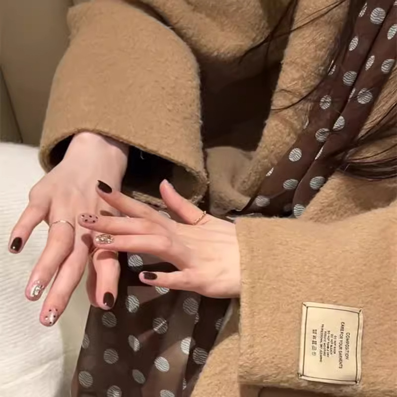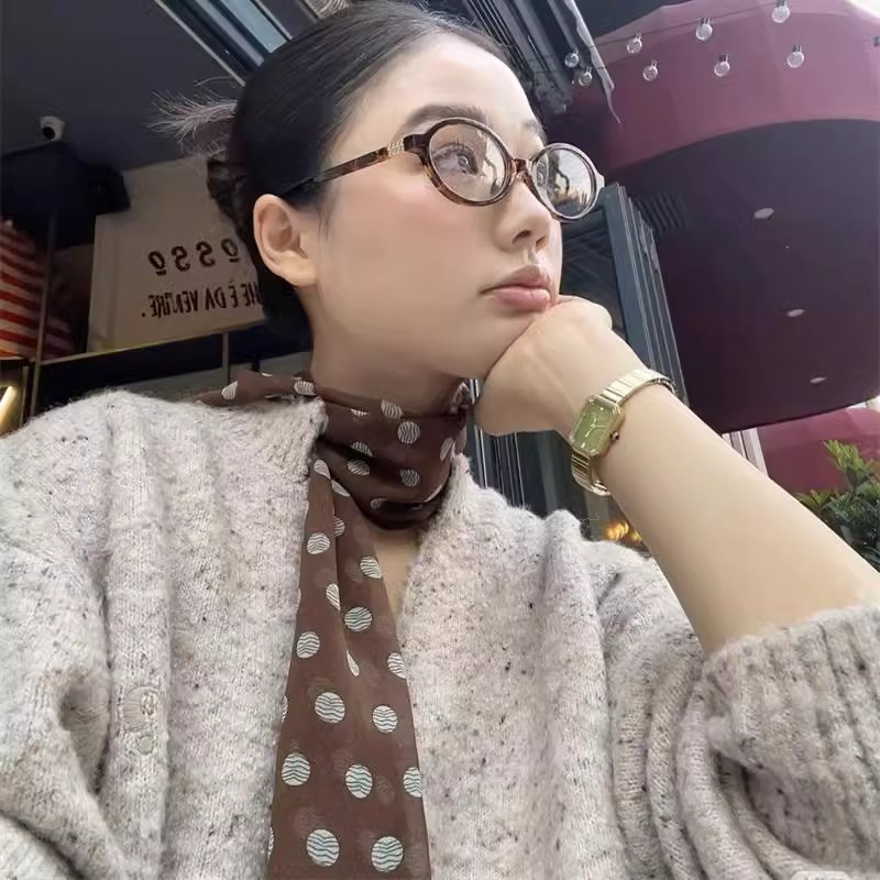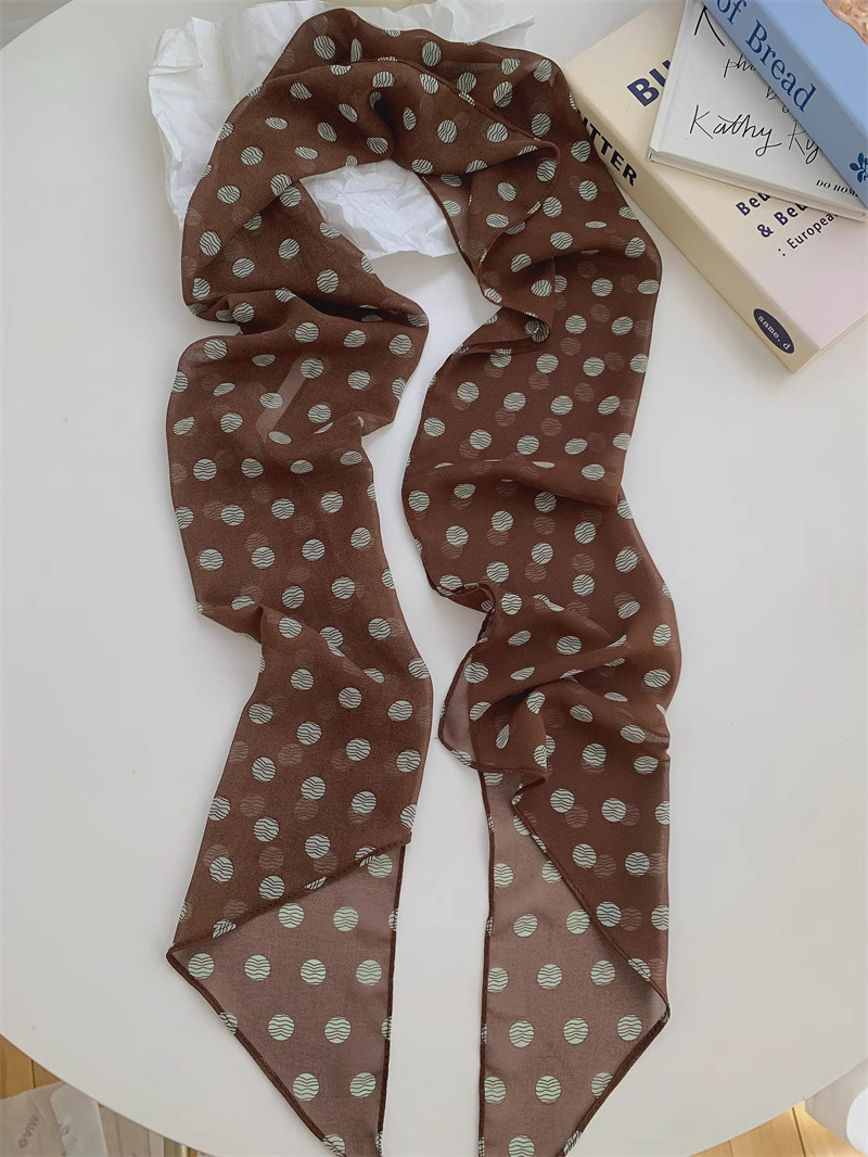 다크 브라운 설문 조사 도트 실크 스카프 인쇄 고급 올 매치 액세서리 목 여자 2024 새로운 머리띠 긴 스카프