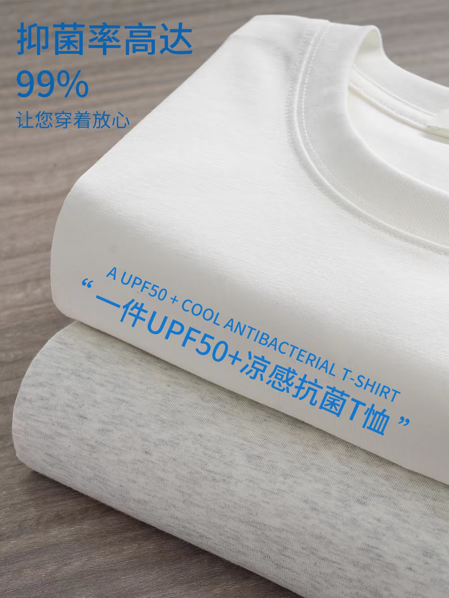솔로 나 헤비 260G 쿨 티셔츠 남자의 UPF50 선 스크린 여름 아이스 실크 7A 항균 솔리드 컬러 느슨한 짧은 소매