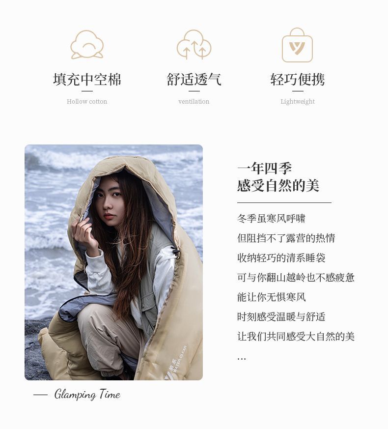 캠핑 성인 야외 캠핑 겨울 텐트 후드 야외 감기 방지 휴대용 더블 스플라이스 슬리핑 백