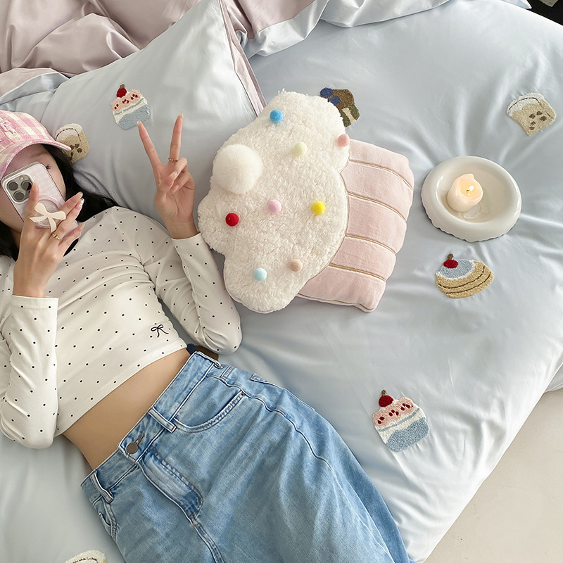 여자 하트 100S 긴 스테이플 코튼 귀여운 수건 자수 4 피스 만화 코튼 퀼트 커버 어린이 침대 시트 침구