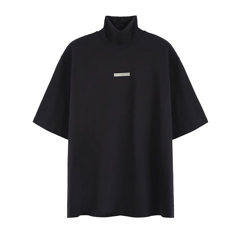 하프 하이 칼라 솔리드 컬러 반팔 티셔츠 남성용 여름 하이 엔드 센스 헤어 스타일리스트 트렌디 브랜드 남성용 간단한 내베이스 셔츠