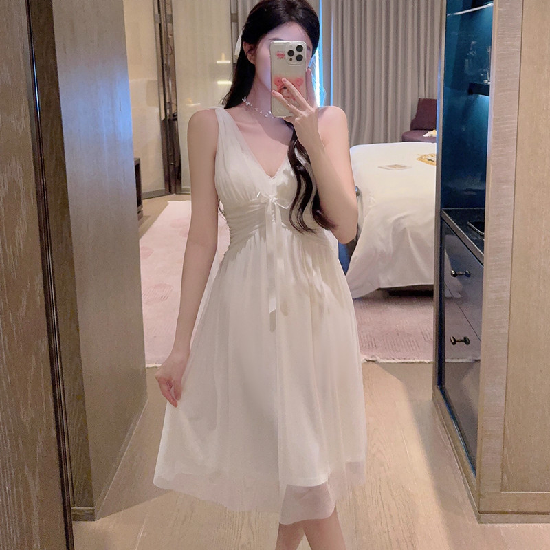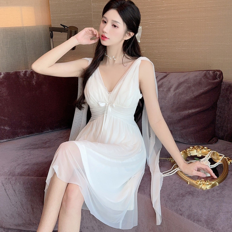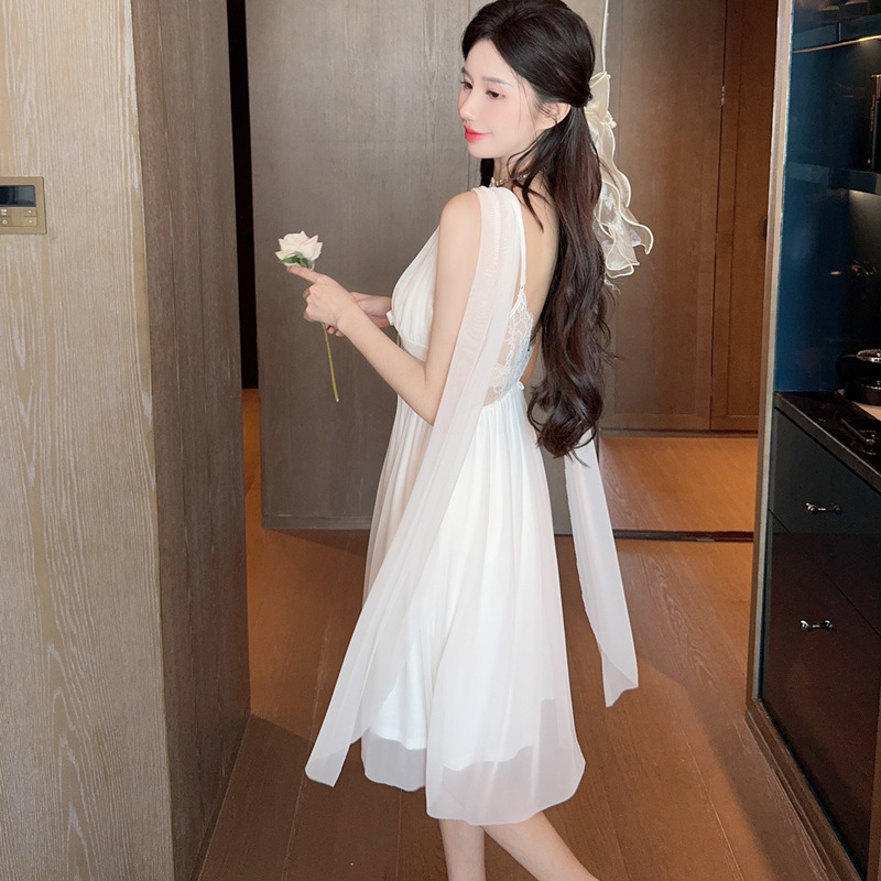 국경 간 패드 섹시 파자마 메쉬 슬링 나이트 가운 여름 새로운 아름다운 백 파자마 홈 옷 슬링 스커트