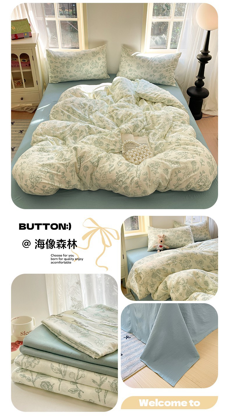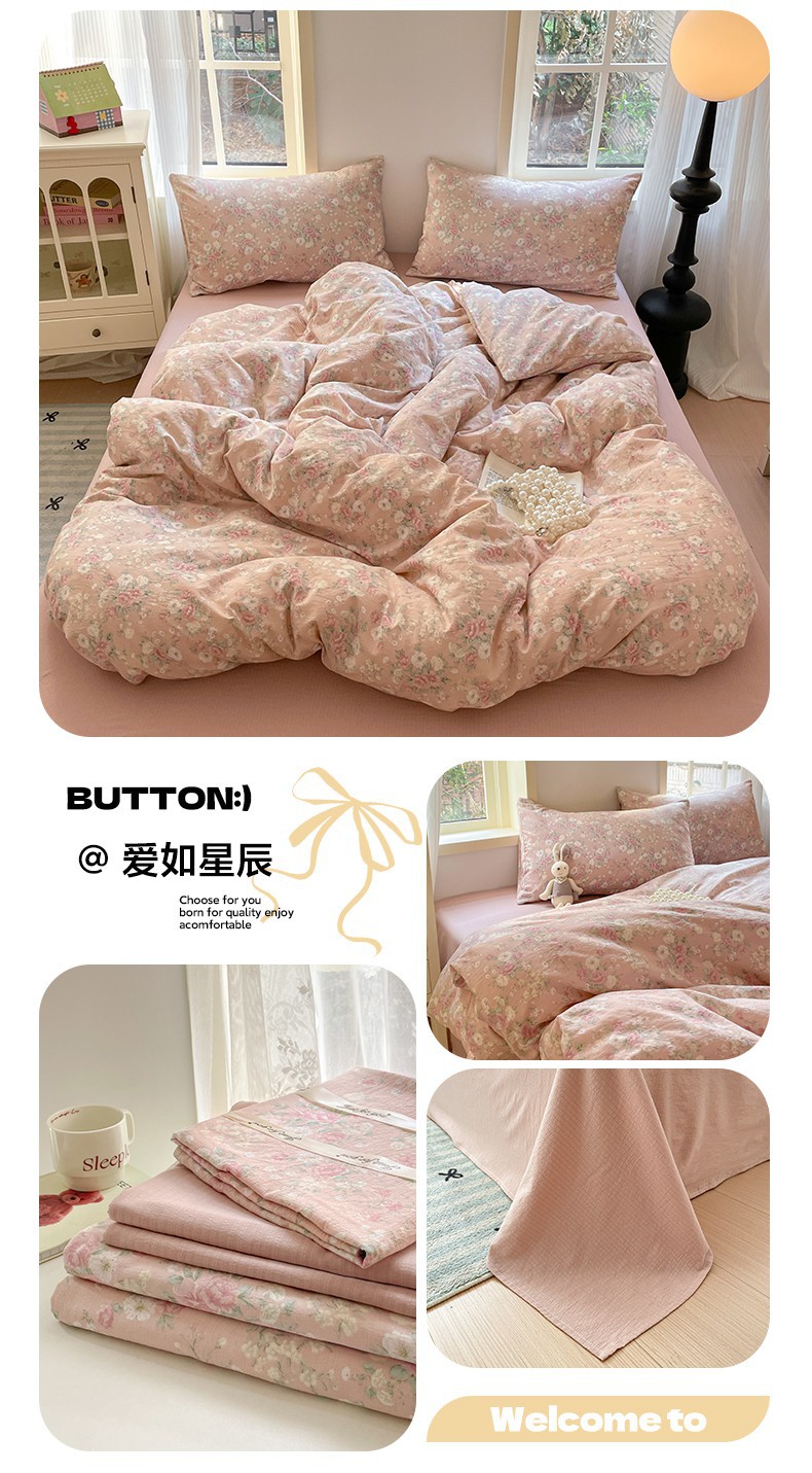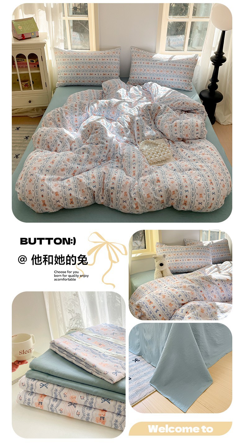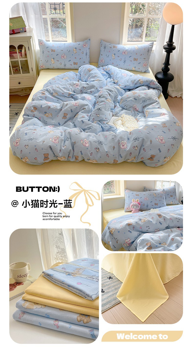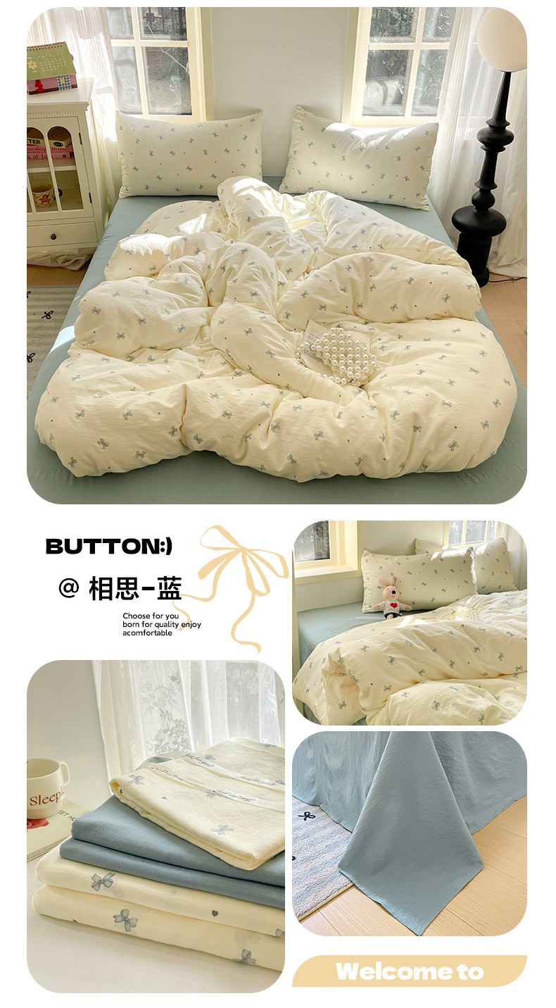 1.5m 침대 시트 4종 세트, 이불 커버 1.5*2.0m, 침대 시트 1.8*2.2m, 베개 커버*2
