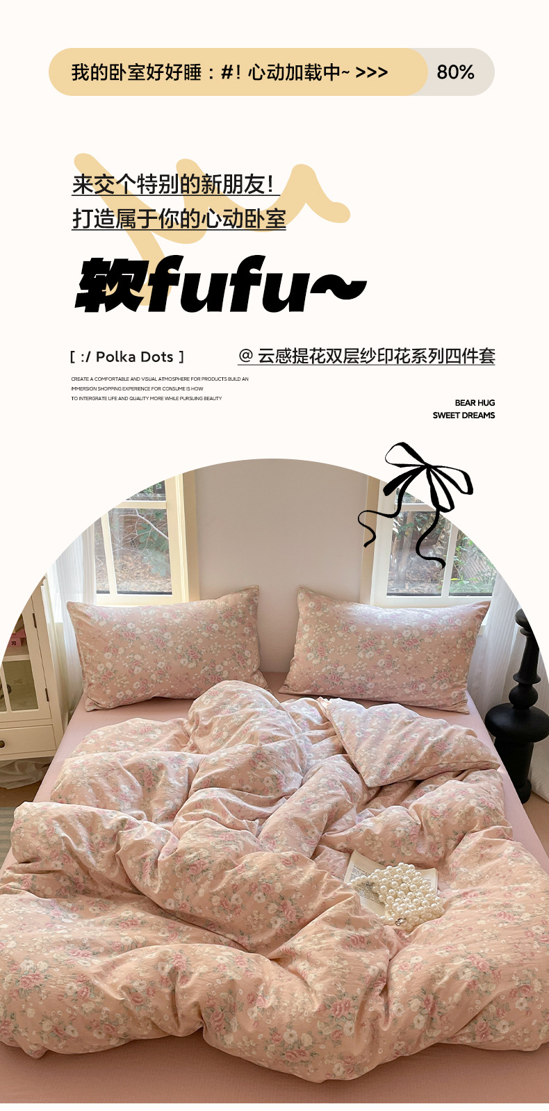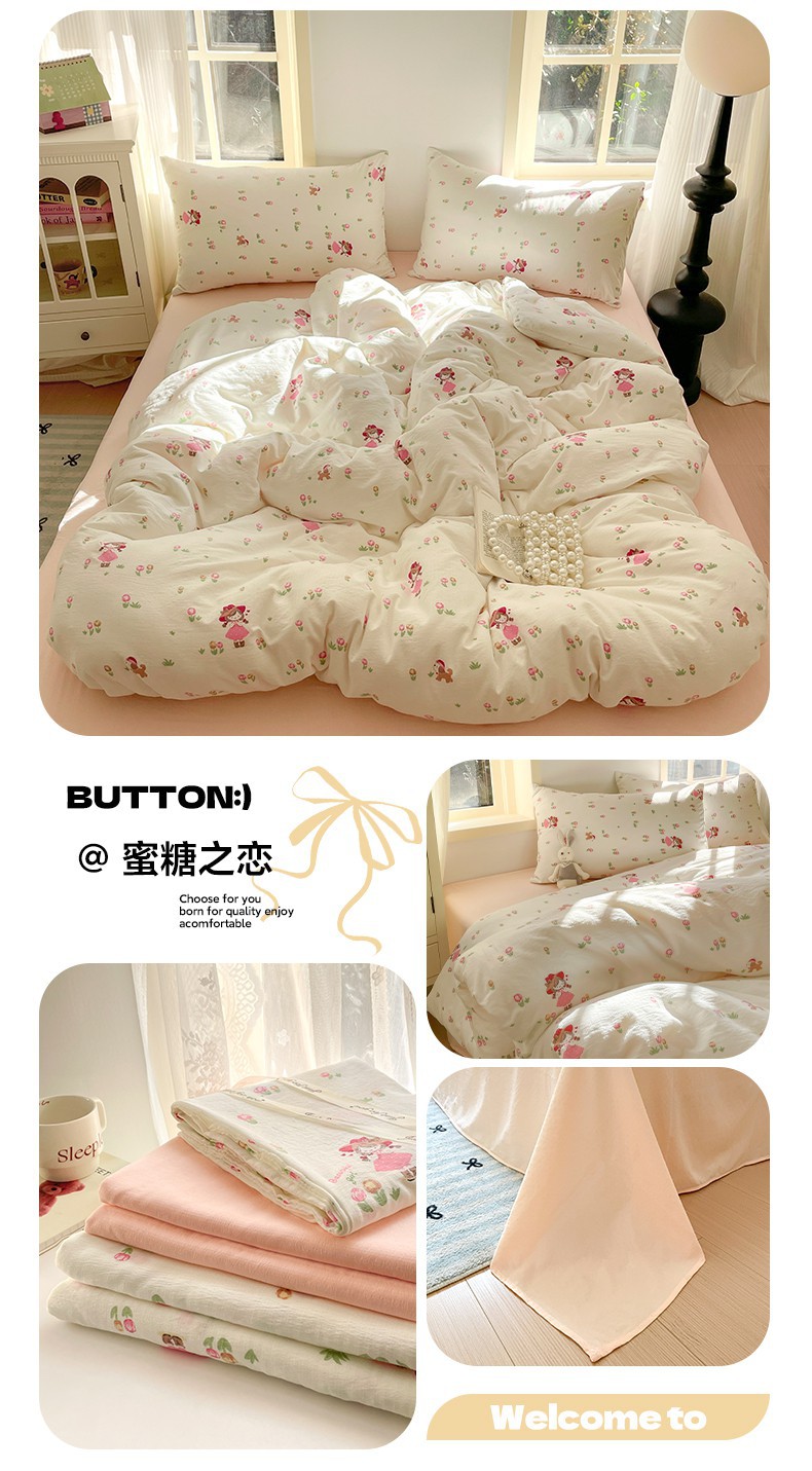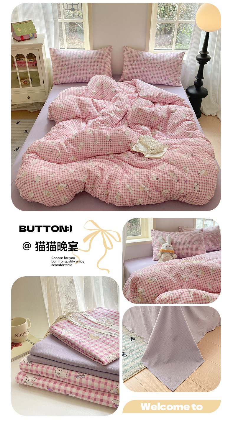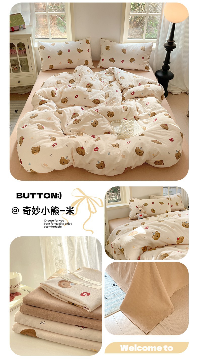 1.5m 침대 시트 4종 세트, 이불 커버 1.5*2.0m, 침대 시트 1.8*2.2m, 베개 커버*2