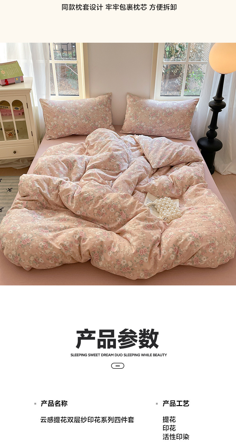 인스 자카드 이중사 침대 시트 4종 세트 A급 침구 2025 가을 기숙사 이불 커버 3종 세트 난퉁