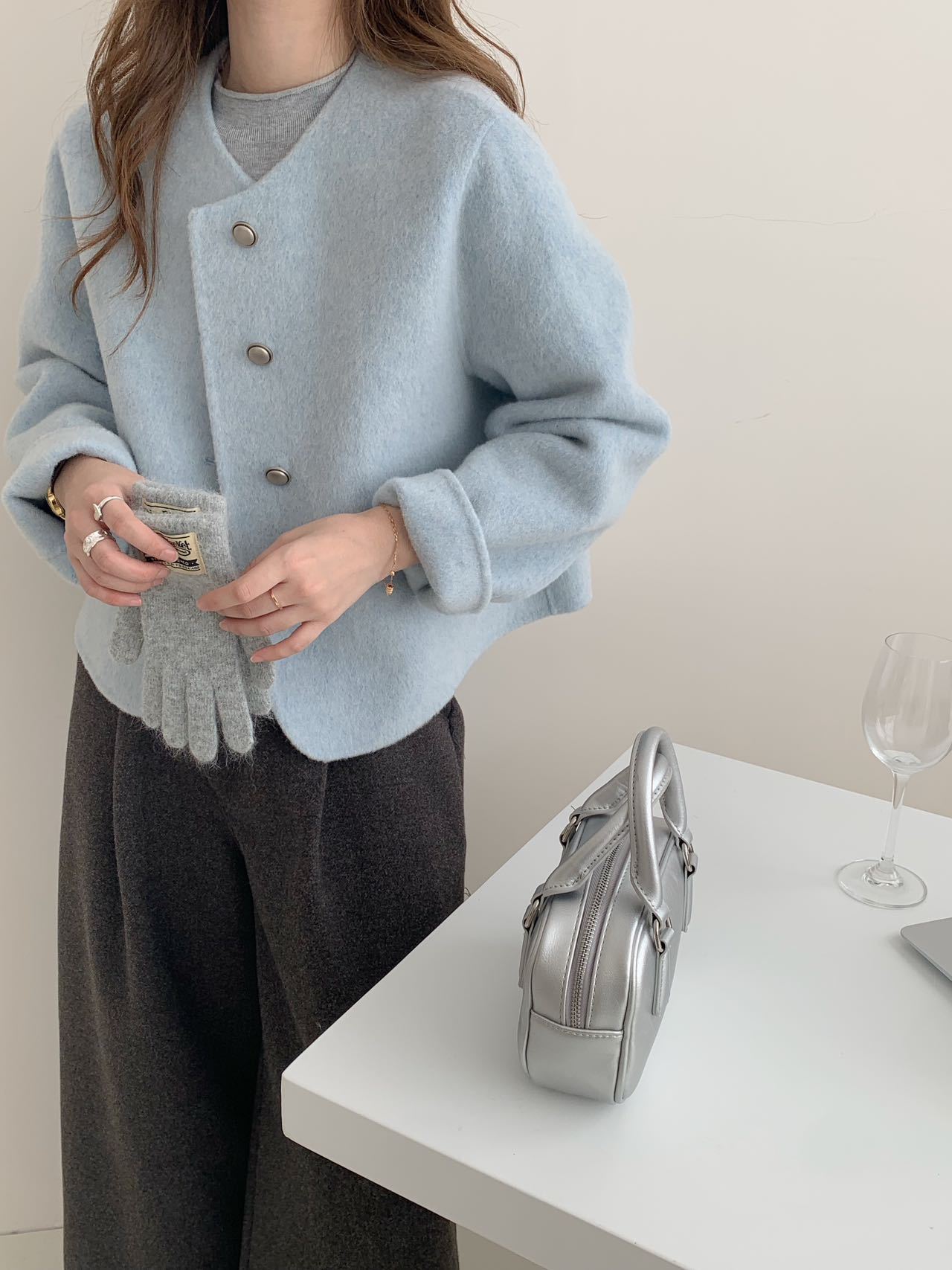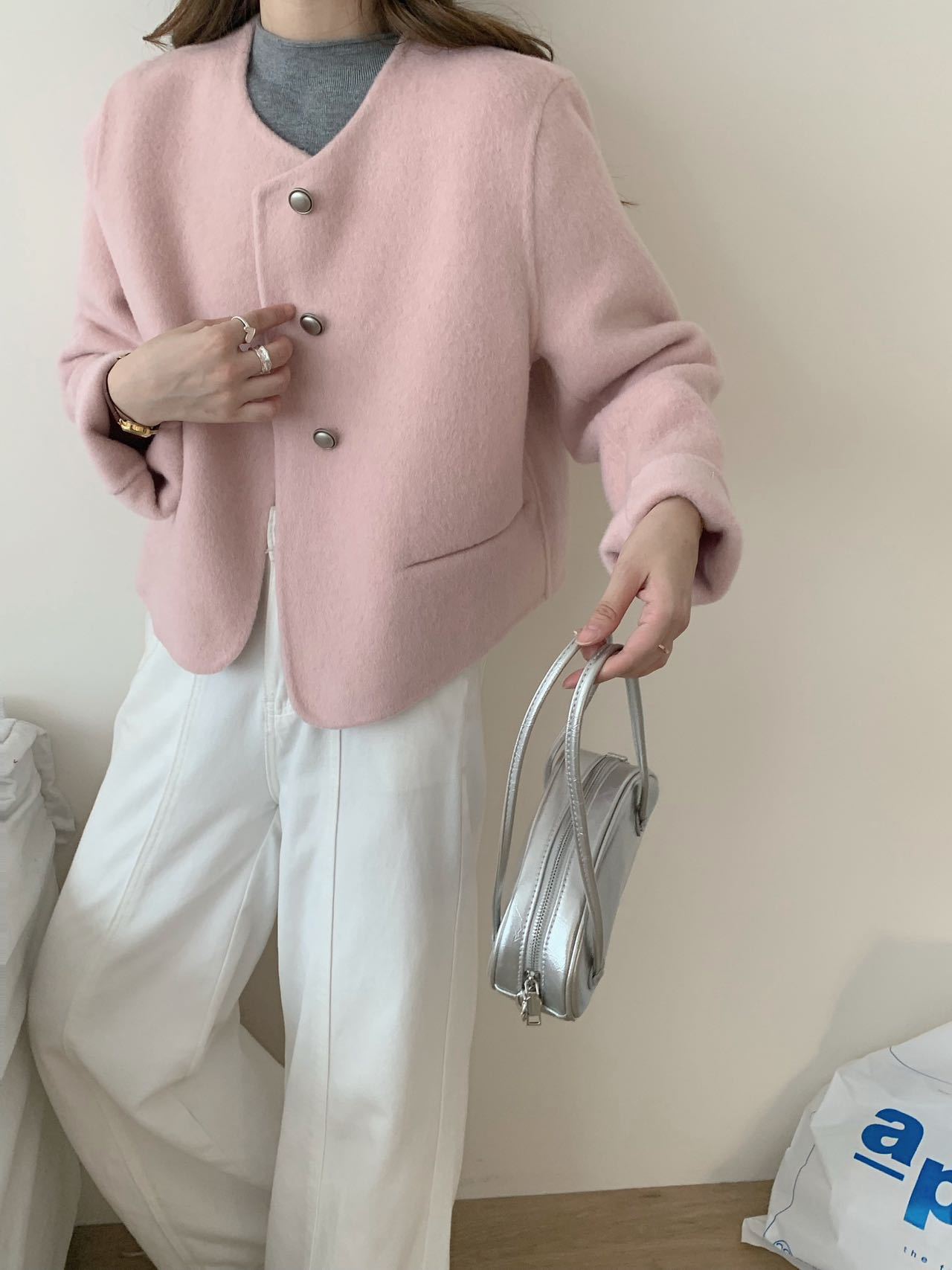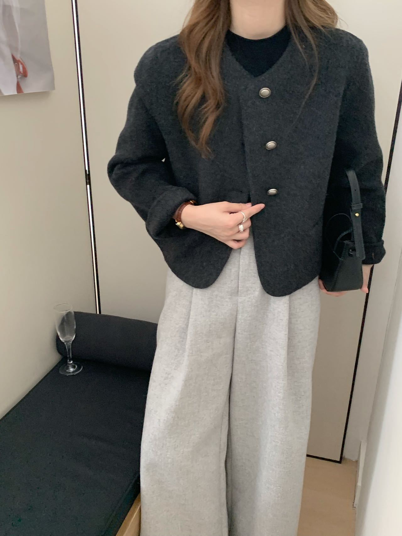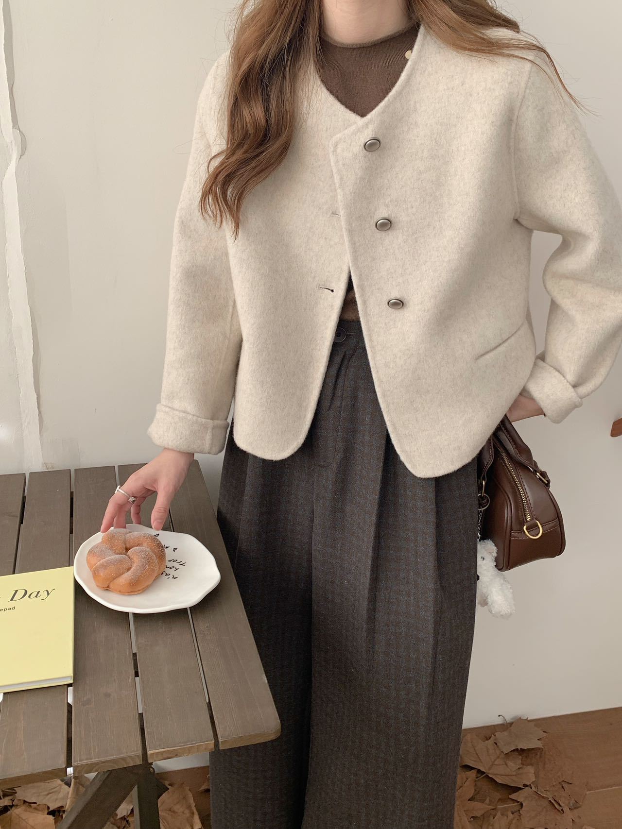 2025 새로운 스타일 샤넬 스타일 양면 양모 코트 여성의 짧은 간단한 통근 느슨한 편안한 울 코트