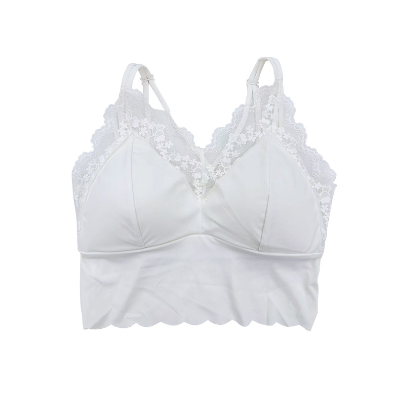 봄과 여름 새로운 아이스 실크 아름다운 백 프랑스 레이스 조끼 가슴 패드 원활한 기본 스트랩 플러스 사이즈 속옷