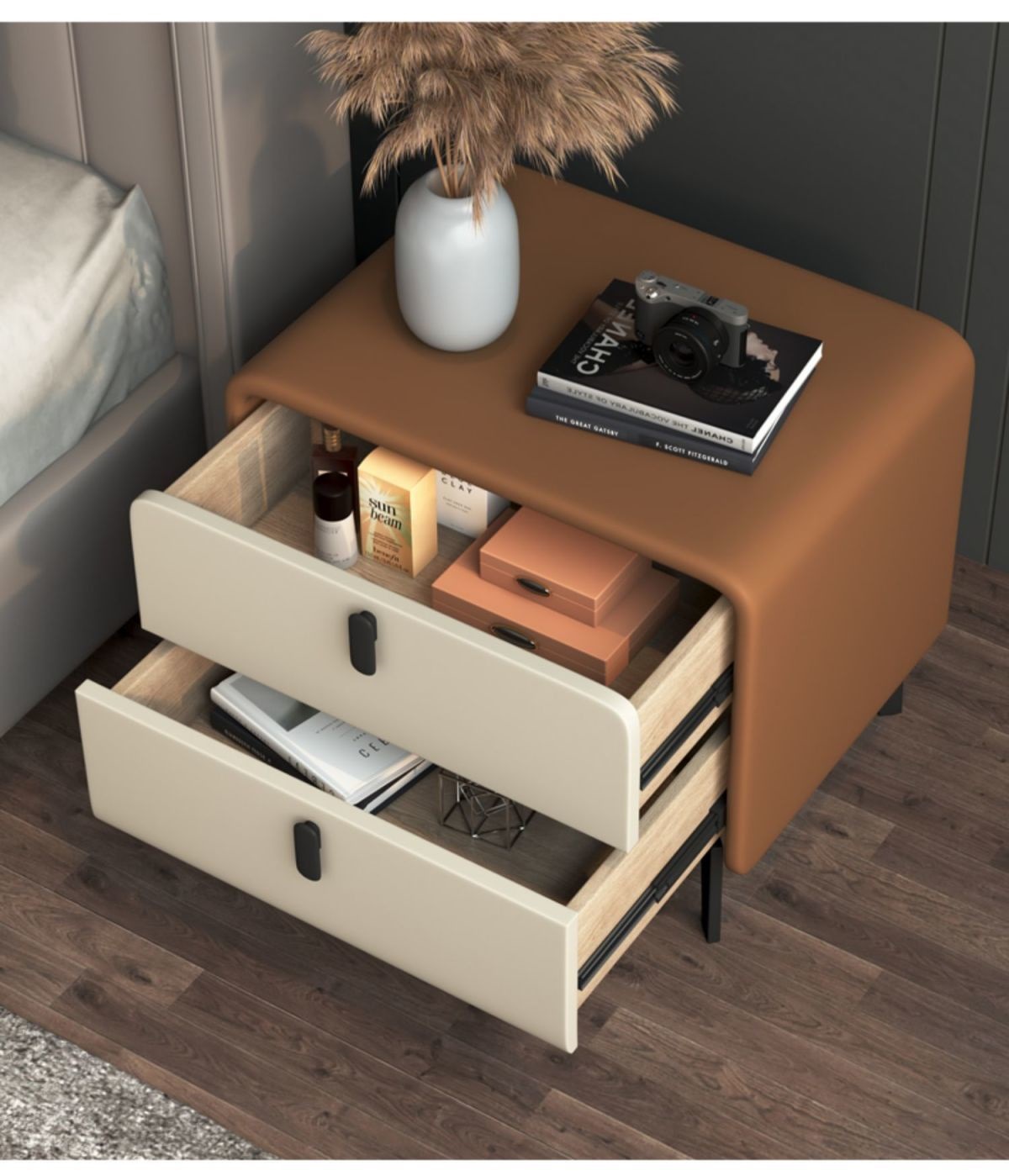 침대 옆 테이블 부드러운 가방 크림 간단한 현대 작은 침실 침실 캐비닛 가죽 보관 캐비닛 설치-무료