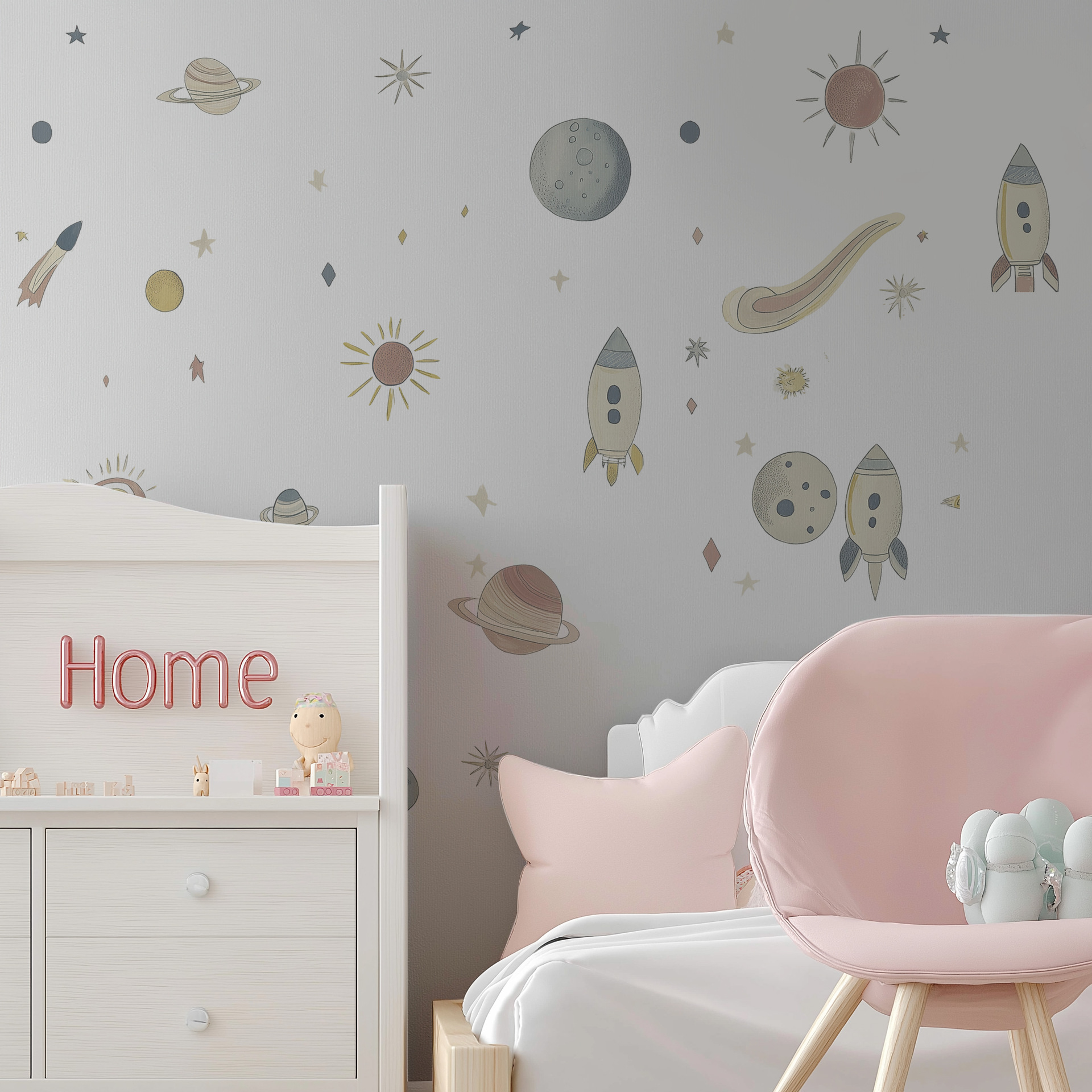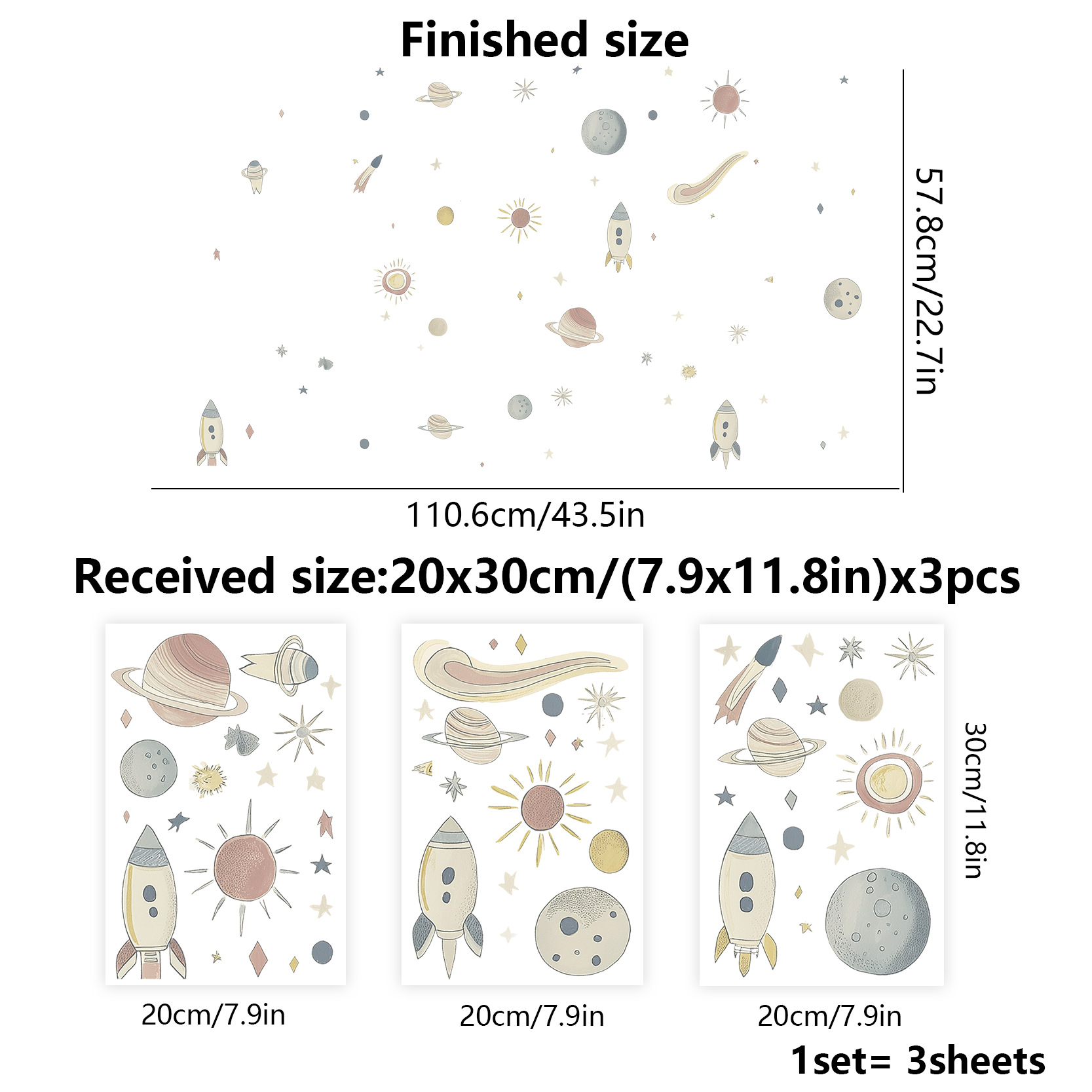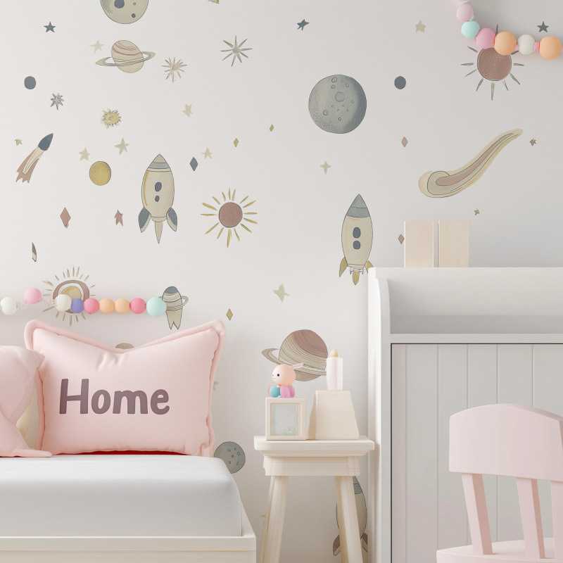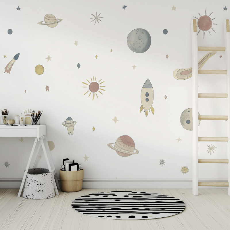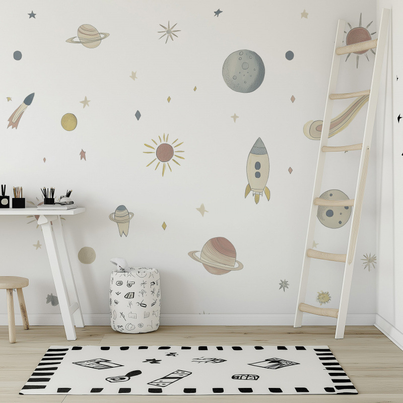만화 어린이 같은 공간 행성 우주선 자기 접착 벽 스티커 집 어린이 방 장식 스티커