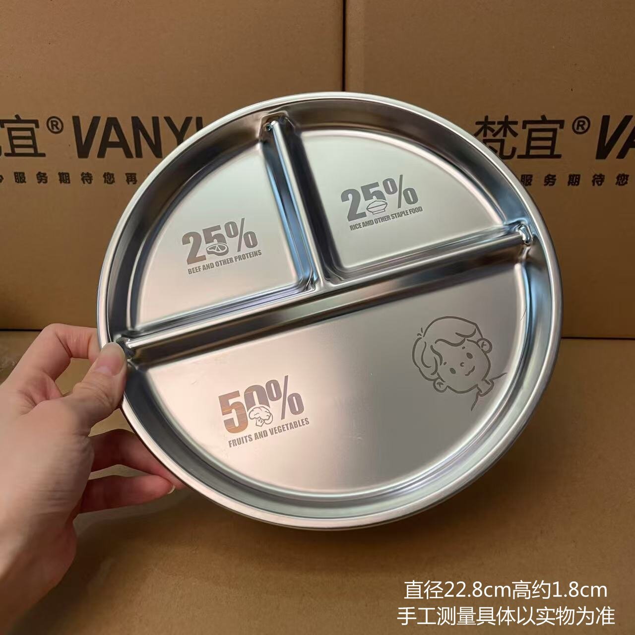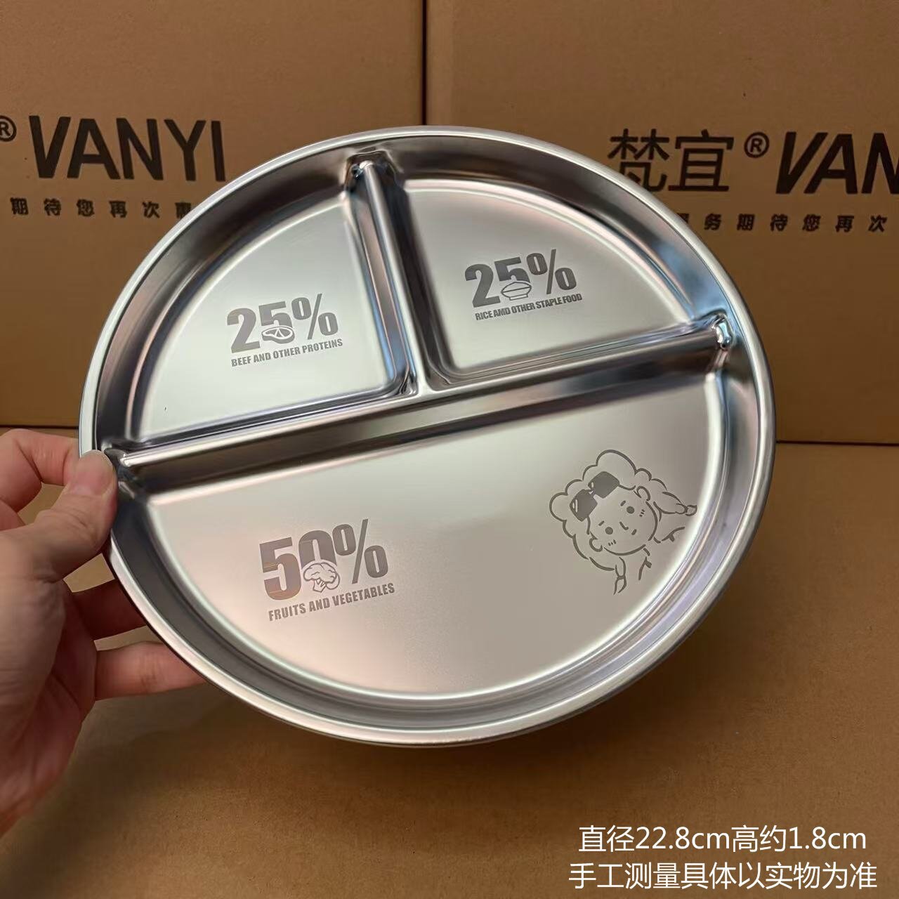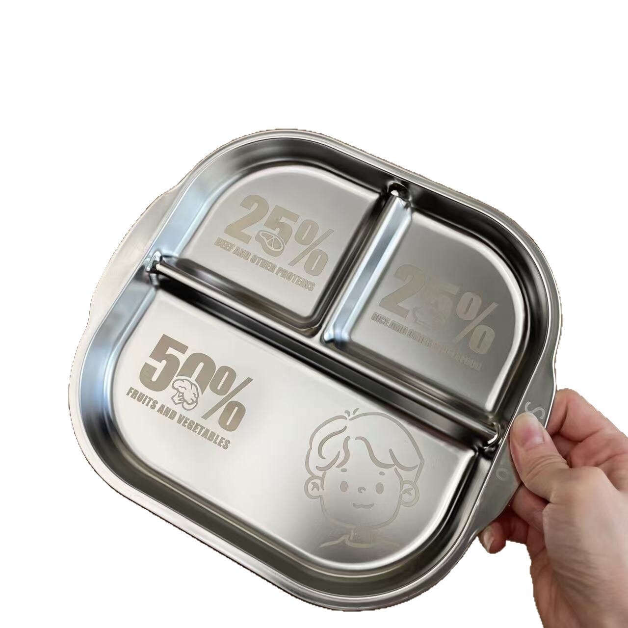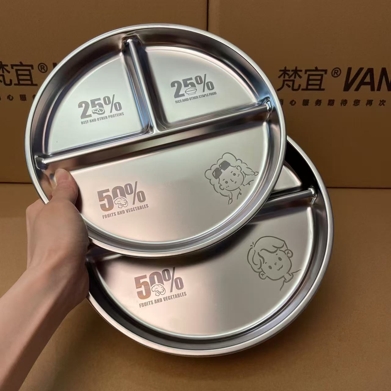 211 스테인레스 스틸 분할 판 지방 감소 판 어린이 식기 3 구획 쌀판 분리 딤섬 조식 판