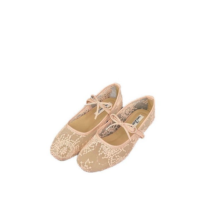 발이 피곤하지 않은 부드러운 밑창, 봄 여름 메쉬 자수 리본 싱글 슈즈, 여성용 중국 섹시 할로우 메리 제인 슈즈, 플랫 슈즈
