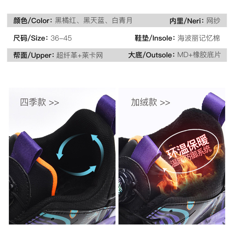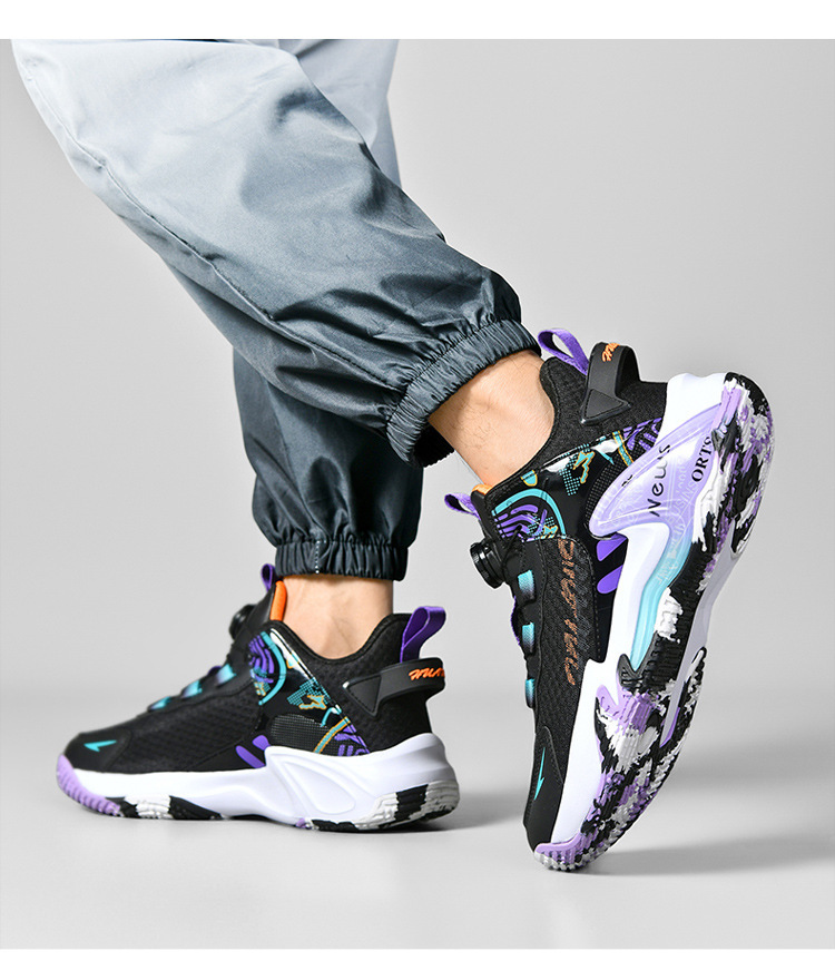 봄 남자 신발 통기성 메쉬 신발 청소년 회전 버클 운동화 부드러운 바닥 달리기 신발 미끄럼 방지 농구 신발