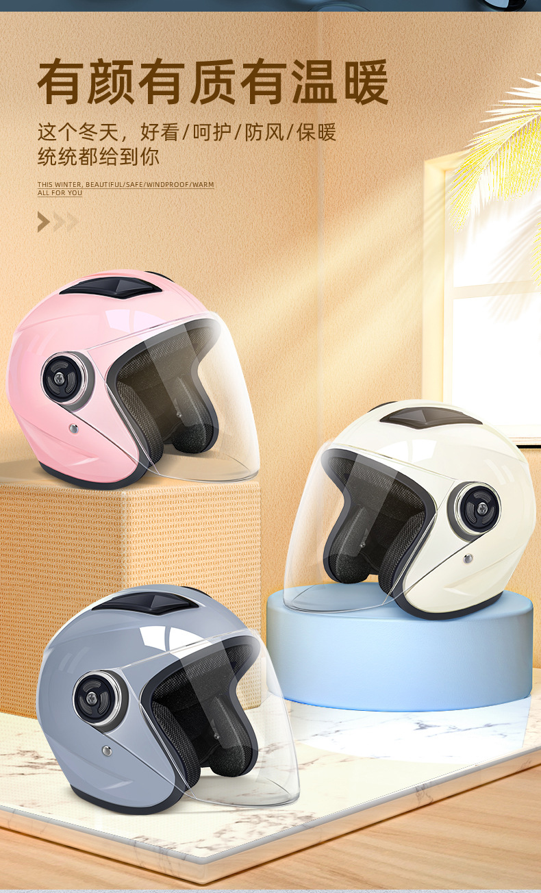 새로운 국가 표준 3C 인증 전기 자동차 헬멧 남자의 가을과 겨울 따뜻한 반 헬멧 여성의 배터리 오토바이 헬멧 사계절