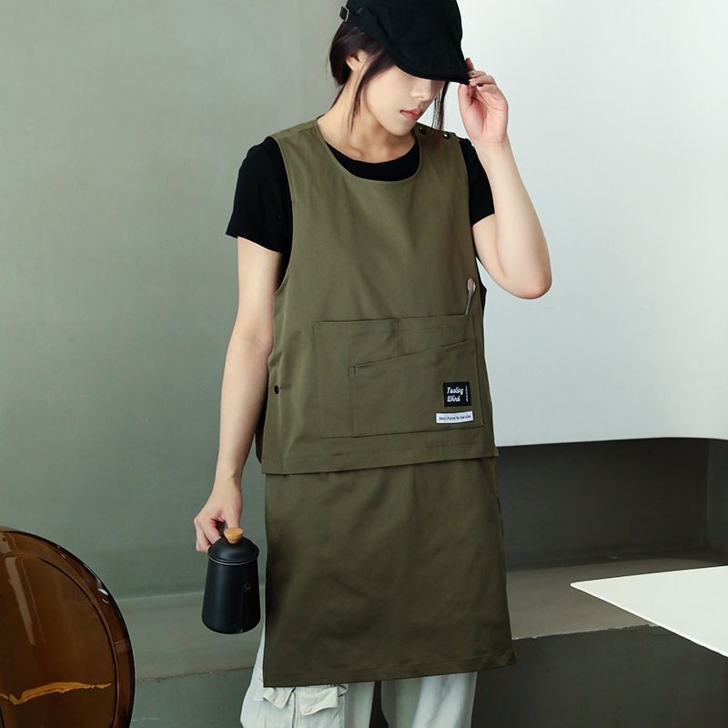 재고 도매 케이터링 주방 작업 앞치마 인쇄 고정 기름 방지 앞치마 우유 차 네일 살롱 슈퍼마켓 앞치마