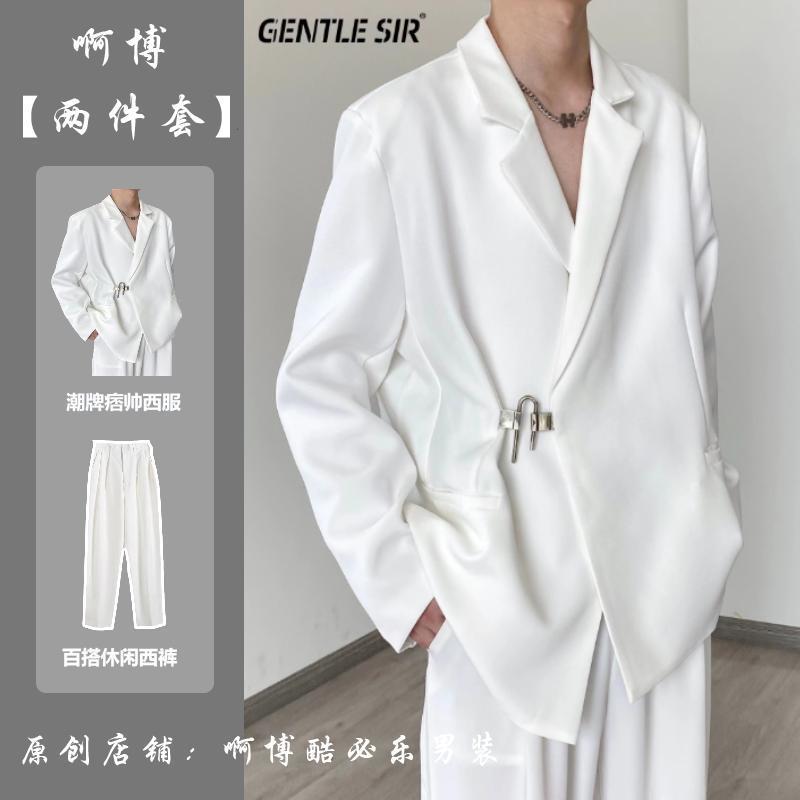 캐주얼 세트 재킷 남성 봄과 가을 하이 엔드 디자인 센스 니쉬, 트렌디 한 새로운 스타일의 핸즈섬 남성 화이트 세트 세트