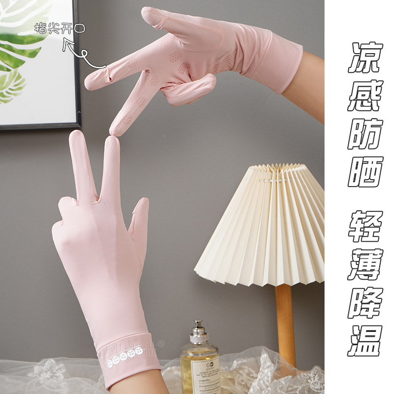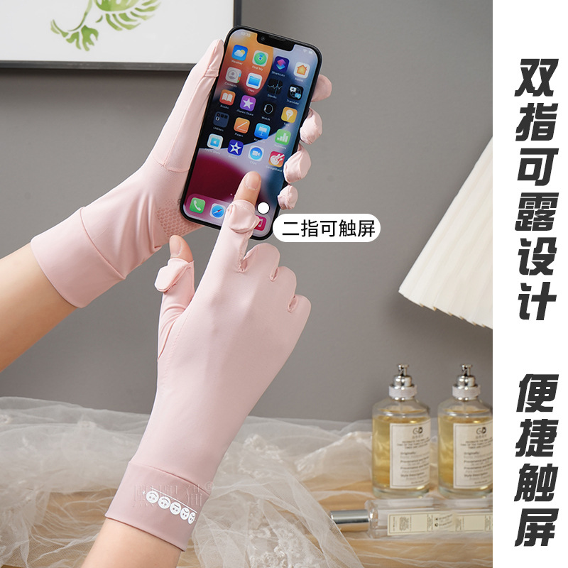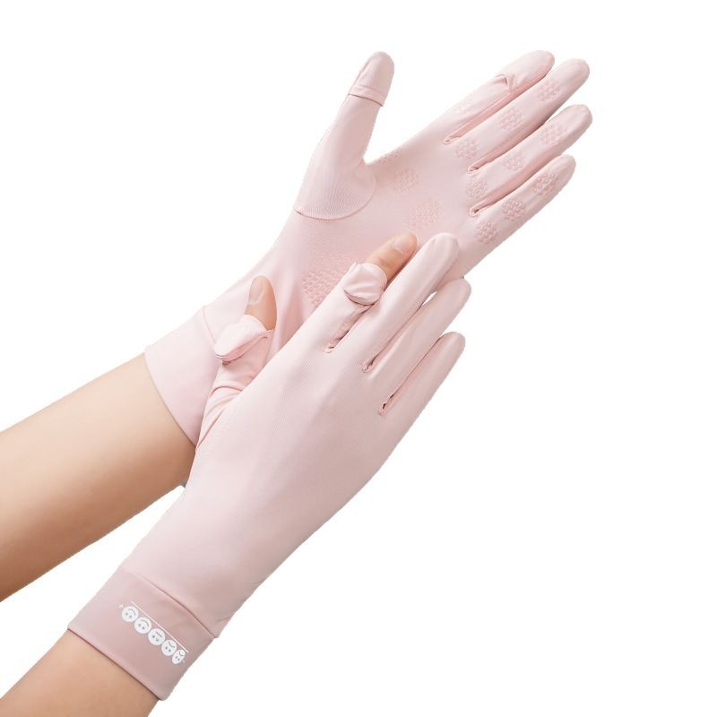 여름 선 스크린 장갑 여성의 얇은 야외 안티 자외선 통기성 플립 커버 미끄럼 방지 운전 승마 아이스 실크 장갑