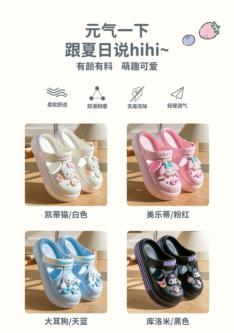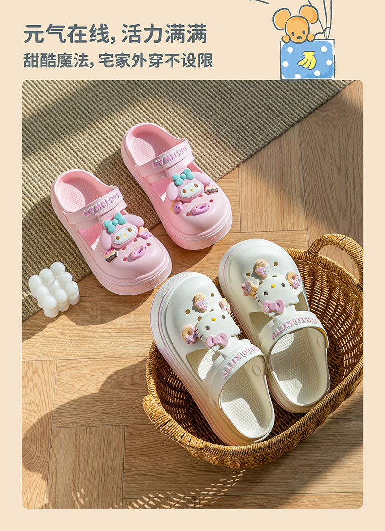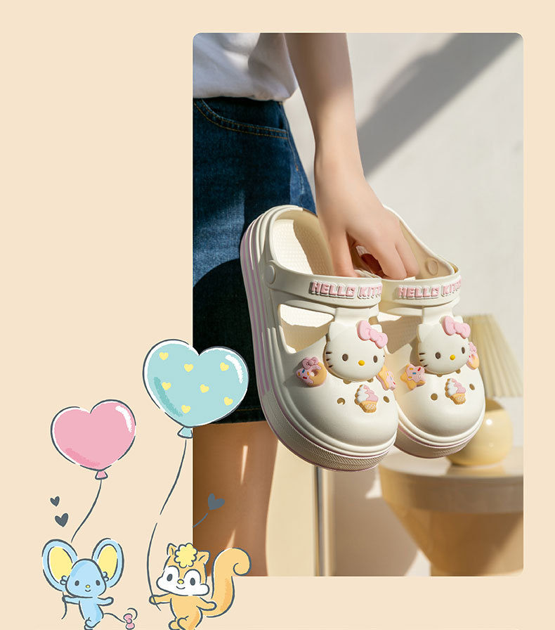 봄과 여름 산리오 귀여운 키티 고양이 구멍 신발 여자 여름 똥 느낌 두꺼운 바닥 에바 소녀 심장 멋진 슬리퍼