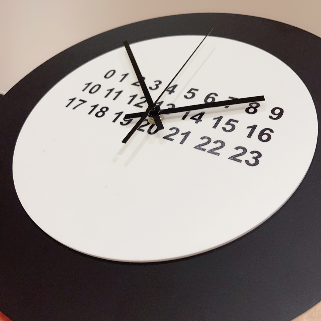 탁상시계는 20*20cm 정사각형이고, 벽시계는 35cm 원형입니다.