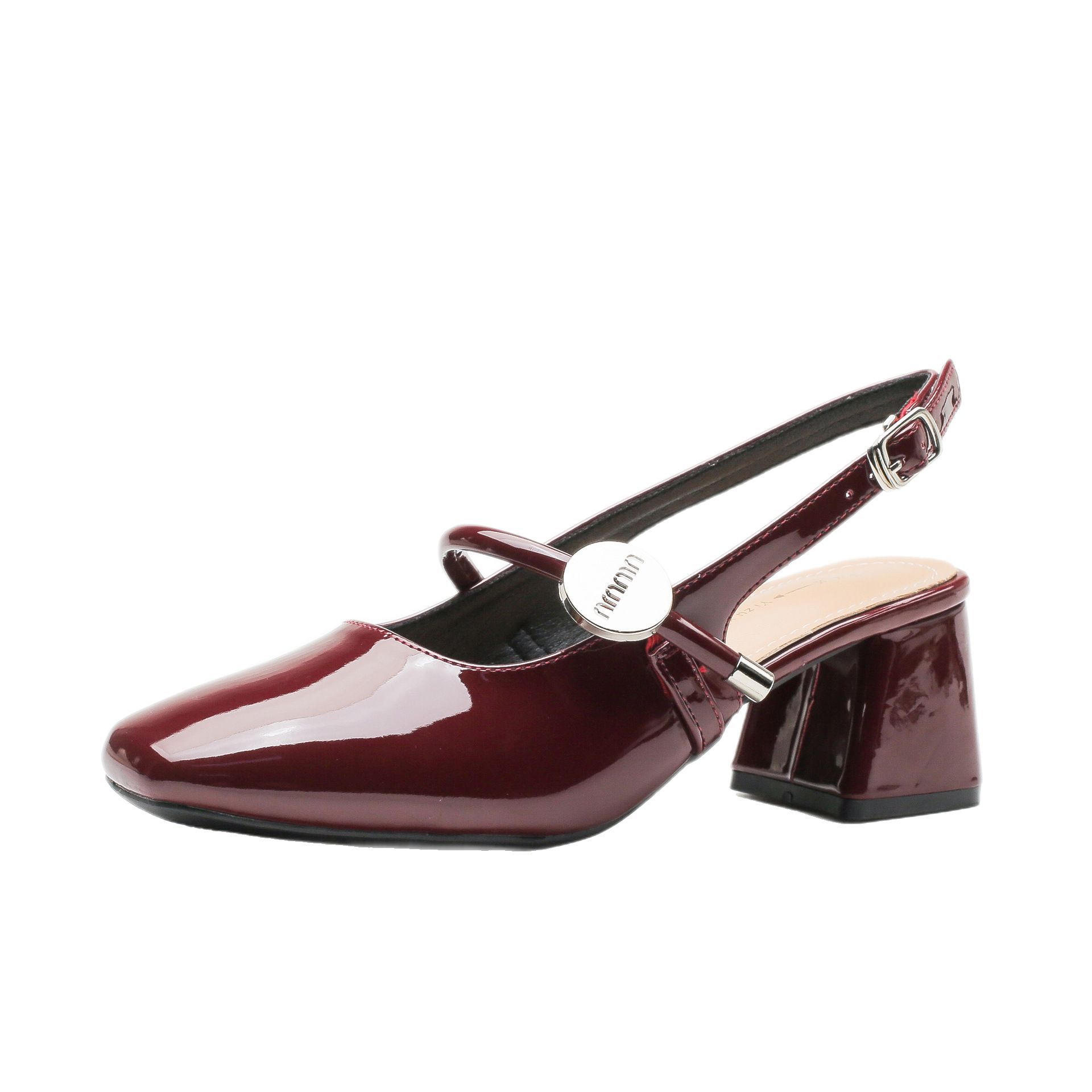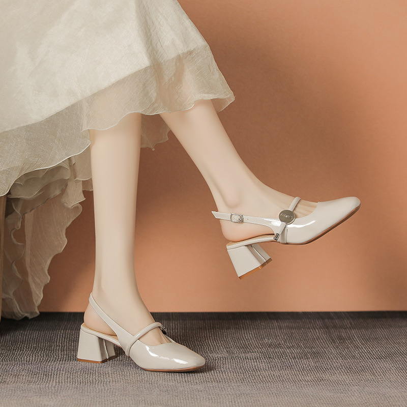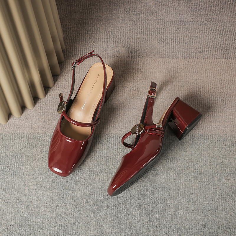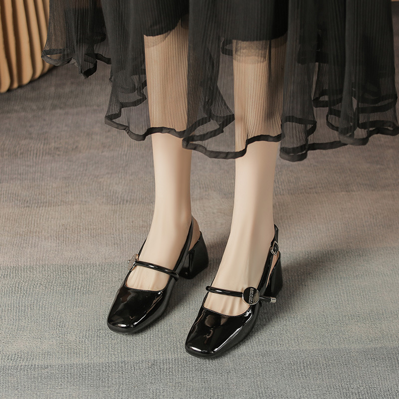 정품 가죽 6CM 발가락 샌들 여성용 메리 제인 페어리 스타일 여름 중엽 프렌치 싱글 패드 신발